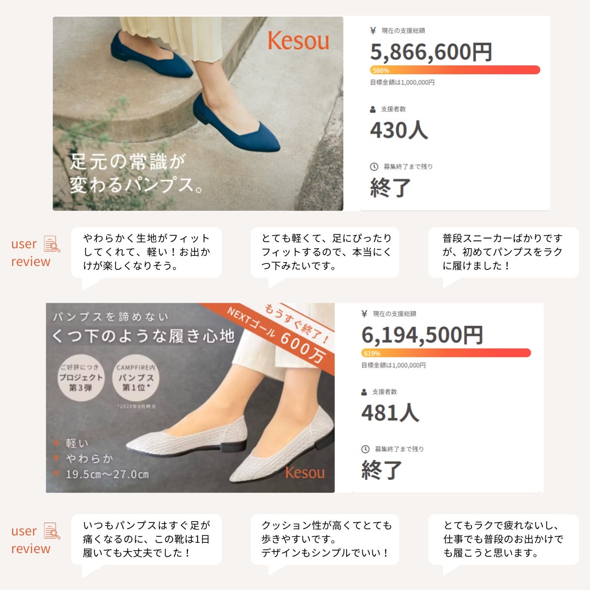 これまで、CAMPFIREでパンプスのプロジェクトを実施させていただき、ありがたいことに多くのみなさまにご支援いただいてきました。