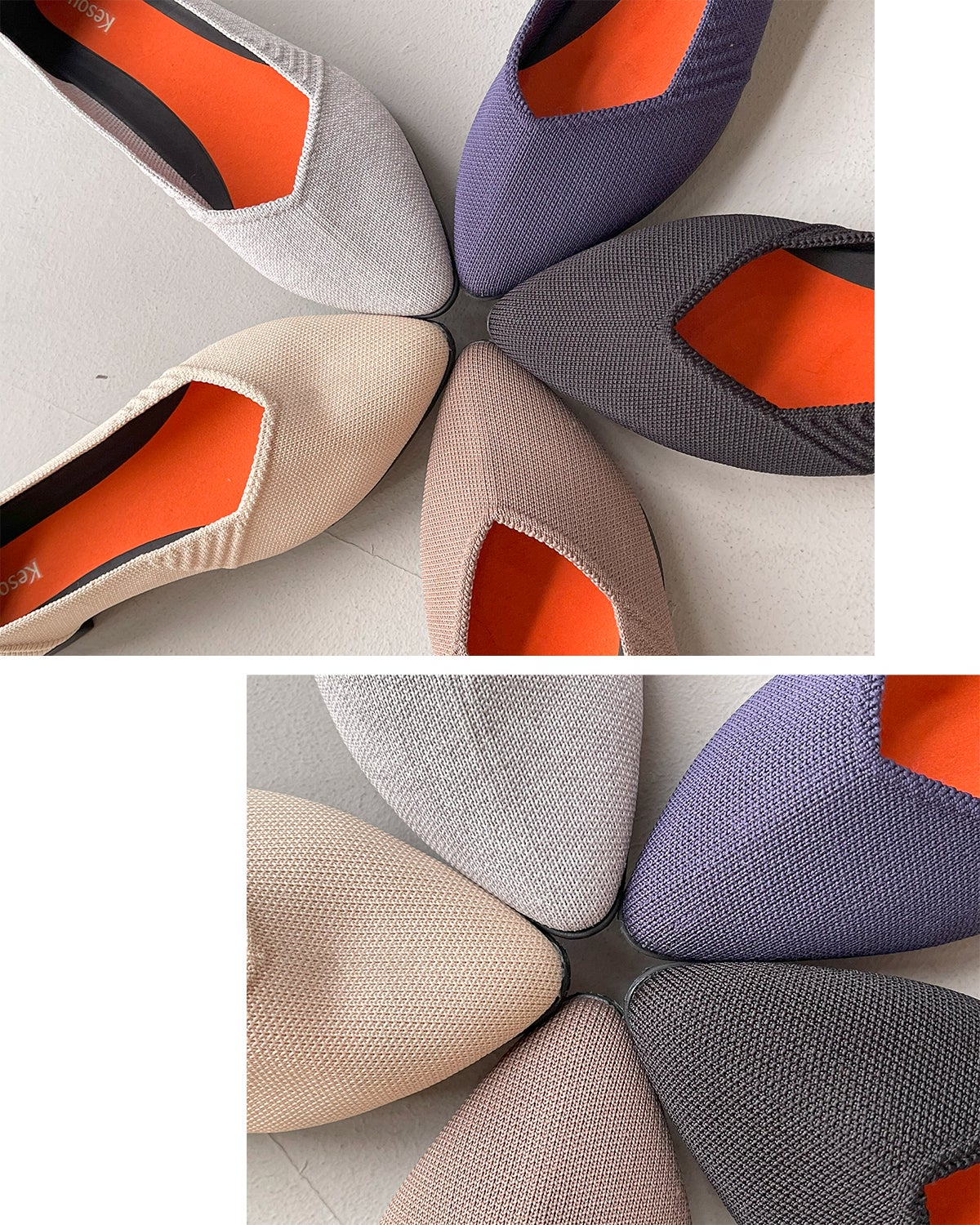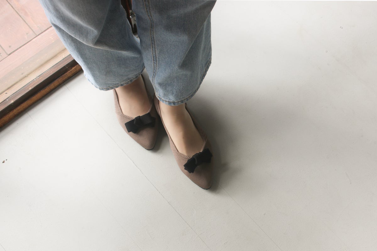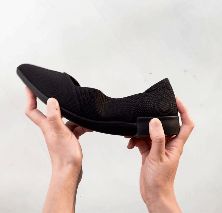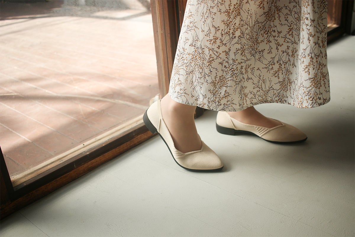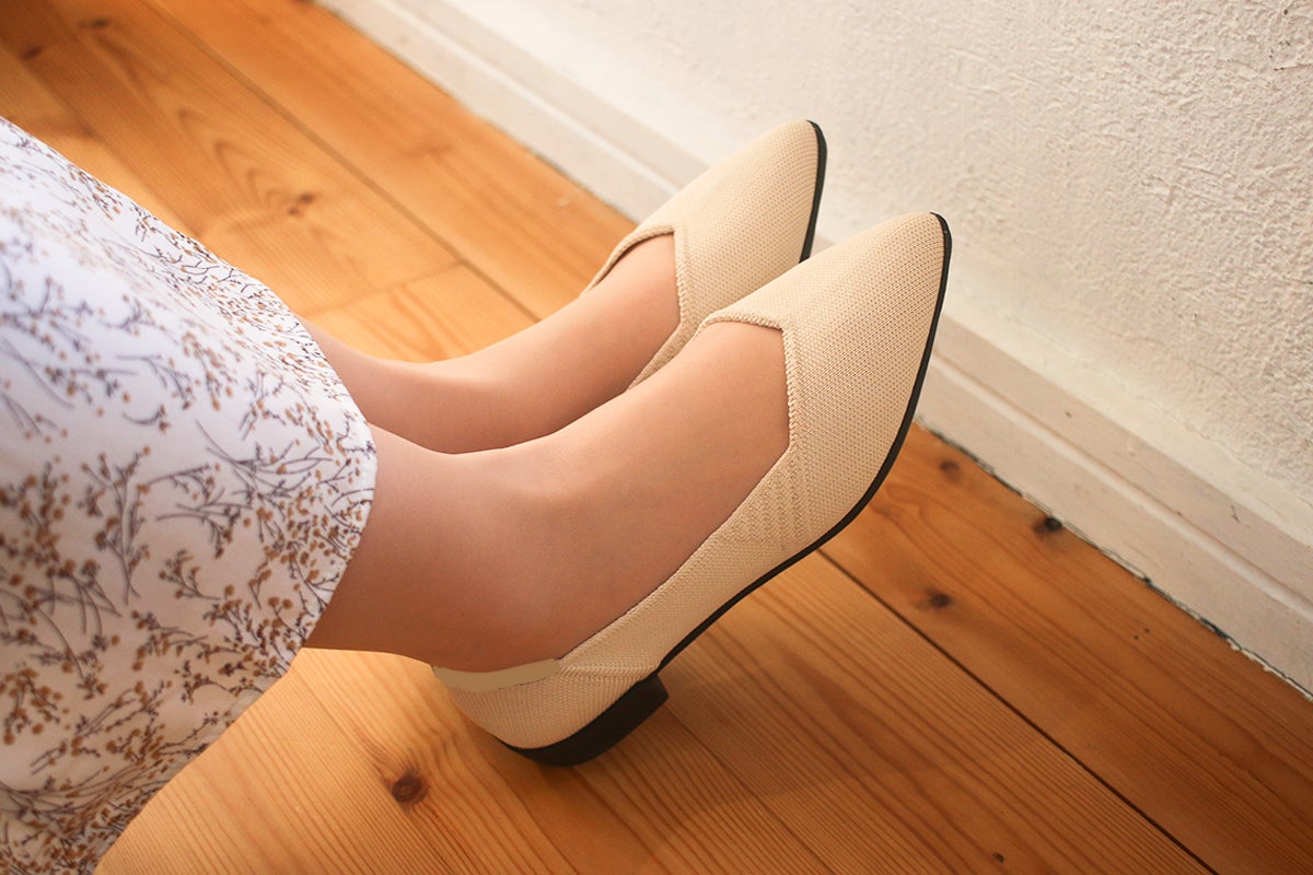 Kesouのパンプスは、ペットボトル再生糸をニット編みにしたアッパーでつくられています。