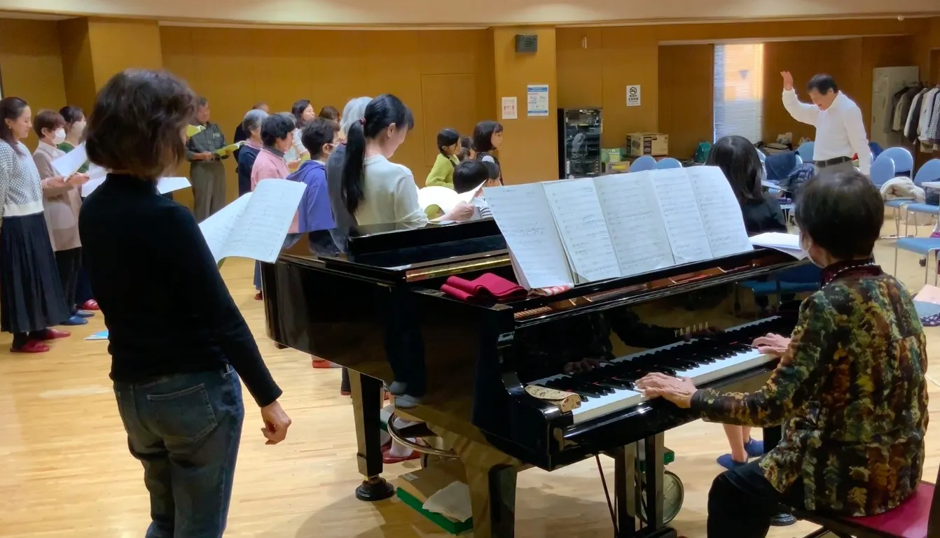 小学生で歌っていた子が結婚し自分の子どもと一緒に歌い、大学生になった子がコンサートの手伝いにと、ファミリーのような繋がりを持つ合唱団です。