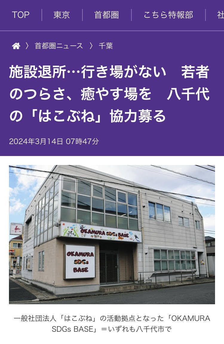 ちょうど、時を合わせるかのように、東京新聞千葉版にも掲載!