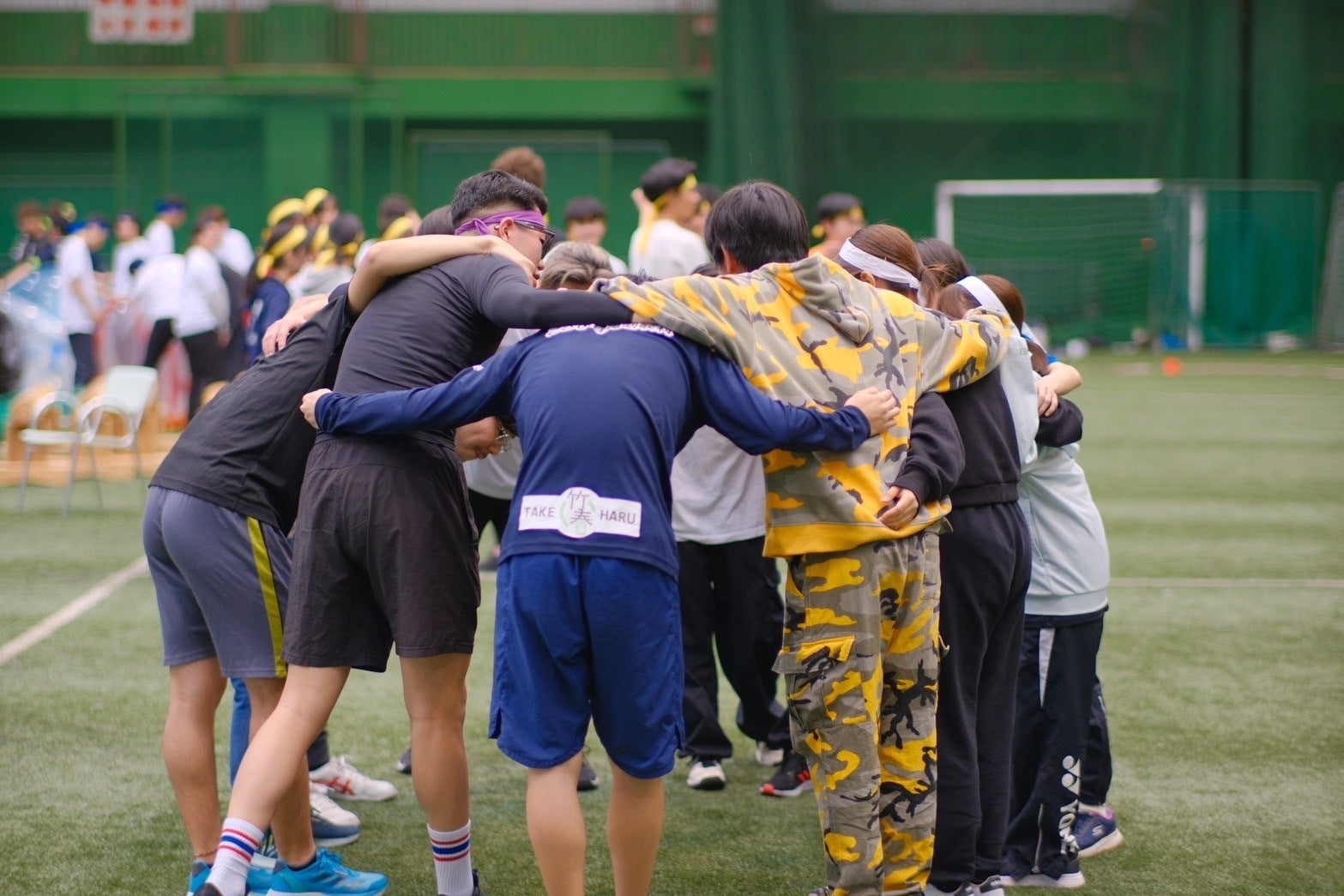 2024/05/28 20:31遅くなってしまいましたが、4月27日(土)体育祭当日の様子のご報告です!約250名の学生が体育祭に参加してくれて、無事に大成功で終わることが出来ました!ここから少し長くなりますが、写真を交えて当日の様子をレポートしていきたいと思います。【受付・開会式】この日は朝から大雨で、「申し込みしてくれていた学生たち来てくれるかな・・・」と不安でいっぱいでしたが、無事に沢山の学生が雨の中参加してくれて、本当にほっとしました。受付でチームごとに色分けされたハチマキを配り、体育祭らしい光景が。。。!開会式では、代表である私や、ご協賛いただいた企業様からもご挨拶をいただき、無事に体育祭の幕開けです!!!ちなみに、当日のプログラムはこのような構成です!①障害物競走②ゴトゴト転がし③バブル相撲④仁淀川!玉入れさせない!⑤部活動対抗リレー(レクリエーション)⑥借り物競争⑦5本物引き⑧チーム対抗リレー⑨〇×クイズ⑩【決勝戦】気配切り合戦この中から少しずつかいつまんでご紹介させていただきます。【障害物競走】体育祭のスタートを飾る競技は、定番「障害物競走」です!ネットくぐりや麻袋飛び、けん玉など、様々なトラップを超えて走っていきます!開始早々大盛り上がりで、会場は実況と応援の声が響きました。「ちゃんと盛り上がるかな」「楽しんでもらえるかな」とドキドキ不安でいっぱいでしたが、この時の参加者の笑顔を見て、本当に嬉しさと安心とで涙が出そうでした。【バブル相撲】続いて、体育祭1,2を争う盛り上がりだった「バブル相撲」です!バブルを身に付け、フィールド内で相手を押し合い、最後まで枠内に残っていた人の勝ちです!この競技は男女ともに迫力が凄く、みんな転がりまわりながら楽しんでいました!【仁淀川!玉入れさせない!】続きまして、私たちのオリジナル競技です!この「玉入れさせない」では、ボールを投げてかごに入れる人、かごを持つ人、逆に玉入れを妨害する人(相手チーム)の攻守に分かれて玉入れを行います。この妨害に使用しているパドルは、実際に高知県の仁淀川にあるアウトドア施設からお借りした、カヤックやSUPに使用するパドルです。少し変わった競技に、会場も盛り上がってくれた様子でした♪【借り物競争】 さて、次は超定番!借り物競争です!「自分とは違う大学の人」「充電が70%以上のスマホ」「逆立ちが出来る人」などなどのお題が。。。!走る人だけでなく、観客も一体になって参加できることから、会場は超大盛り上がりでした。何より、チームの枠を超えて学生同士が声を掛け合い、違うチームの人とも、喋ったことのない人とも、並んでゴールを目指す姿がとても「青春」って感じで、とてもキラキラしていました。【5個物引き】続いて、こちらも1、2を争うほどの盛り上がりだった「5個物引き」!・大繩(長)・大繩(短)・タイヤ(大)・タイヤ(小)・丸太風の棒を2チームに分かれて奪い合います!それぞれの物には異なるポイントが付けられており、どのタイミングで、どれを狙うのか、戦術が問われる競技です。この写真に写っている縄、長いものは10メートルあるんですが、購入しようにもちょうどいいものがなく、細い工事用の縄をすべて手作業で何度も三つ編みにして作りました。これが意外と大変で、一つの縄を完成させるのに3~4時間かかっています(笑)大変すぎて準備物の中で一番不人気でしたが、なんとか交代しながら完成させた、思い出の品です。【チーム対抗リレー】さて、このチーム対抗リレーが予選最後、つまり、決勝戦へ進めるチームが決まる最後の競技になります。さすが決勝戦進出が決まる勝負ということもあり、一番気合が入っていたかもしれません。男女ともにガチ走り!一番「体育祭っぽい」光景でした。そして・・・決勝戦に進むチームの発表です!(ドキドキ)結果は。。。オレンジチームが決勝進出です!上位チームはこの表情!いい写真です♪【気配切り合戦】そして、優勝チームを決める決勝戦は「気配切り合戦」です!目隠しをして、音や気配だけを頼りに、相手を剣で叩くというもの。チームの中にはそれぞれ「兵士」「二刀流」「槍使い(長い刀)」「総大将」の役目があり、武器や刀を振れる回数が違います。そして、総大将が討たれた地点でそのチームは負けです。そのため、これも意外と戦術が必要で、作戦会議タイムにはチームメンバーで配置や役割を考え抜きます。この競技、「気配切り」という名前だけあって、音を立ててはいけません。最後を飾る競技に無音って大丈夫かな。。。と実は心配していたのですが、これ意外と観客側も見ていると面白くて、予想以上に盛り上がってくれました!よかったあ~(ホッ)【閉会式・表彰式】そんなこんなで、無事に体育祭は大盛り上がりで終わりました!帰っていく人の笑顔を見たら、本当に何とも言えない嬉しさや達成感がこみあげてきました。見ず知らずの人が楽しそうにしてくれていることが、こんなにも
