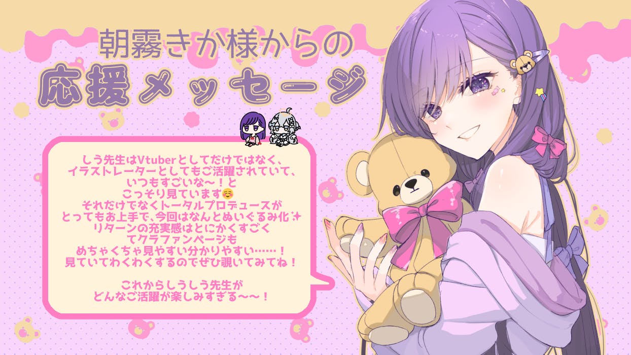 年単位のブランクがあるしうしうのTRPG復帰などでお世話になっている朝霧きか様から応援メッセージをいただきました!