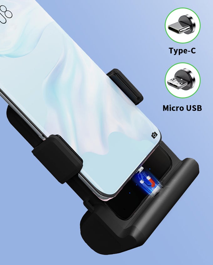 「YRBank」にはType-CとAndroid MicroUSBの2つの磁気吸着式アダプターが付属しており、「パっ」と吸着してから、ワイヤレス充電非対応のスマホに差し込むだけでオッケー!