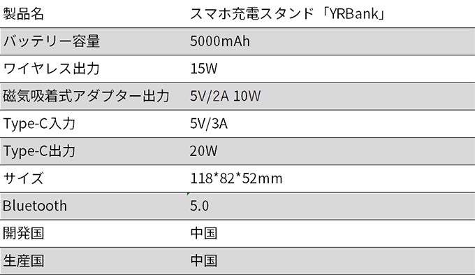 純銅コイルと感度センシングが搭載されており、「YRBank」は5W/7.5W/10Wの出力と互換性があり、最大で15Wの急速充電が可能です。