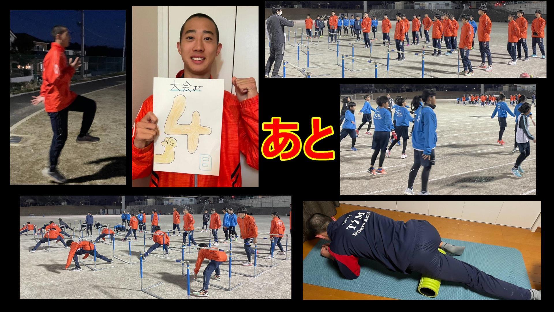 1月31日(水)活動報告・・・【大阪室内(全国大会)まであと3日】 大阪室内陸上まで残り3日。カウントダウン担当は和知(60m H)です。本日も各自で調整トレーニング、調子を上げてきています。当日が楽しみです。愛知県は断続的な降雨のため和知は室内で調整しました。先日はWA室内ツアー・ゴールドで桐生選手が室内日本新記録を更新しましたね。陸上界も盛り上がってきています。「楽しく・真剣に」TSMクラブ生も頑張ります。応援よろしくお願いします。選手たちは、春・秋の合宿から夏の猛暑、極寒の中での練習まで、厳しい条件のもとで頑張ってまいりました。その成果として、今回は6人が全国大会出場を果たすことができました。これもひとえに、皆さまの温かい応援、仲間たち・卒団生・保護者の支えのおかげです。励ましの言葉、応援の声、そして日々のサポートがあったからこそ、私たちはここまで来ることができました。大会では、順位以上に経験と大切な学びになることでしょう。一つ一つの瞬間を大切にし、コーチや仲間たちと共に力を合わせて精一杯がんばります。これからもどうぞよろしくお願いいたします。皆さまの応援が私たちの力となり、素晴らしい瞬間をわかちあえることを期待しています。皆さまの応援、ご支援を心より感謝申し上げます。