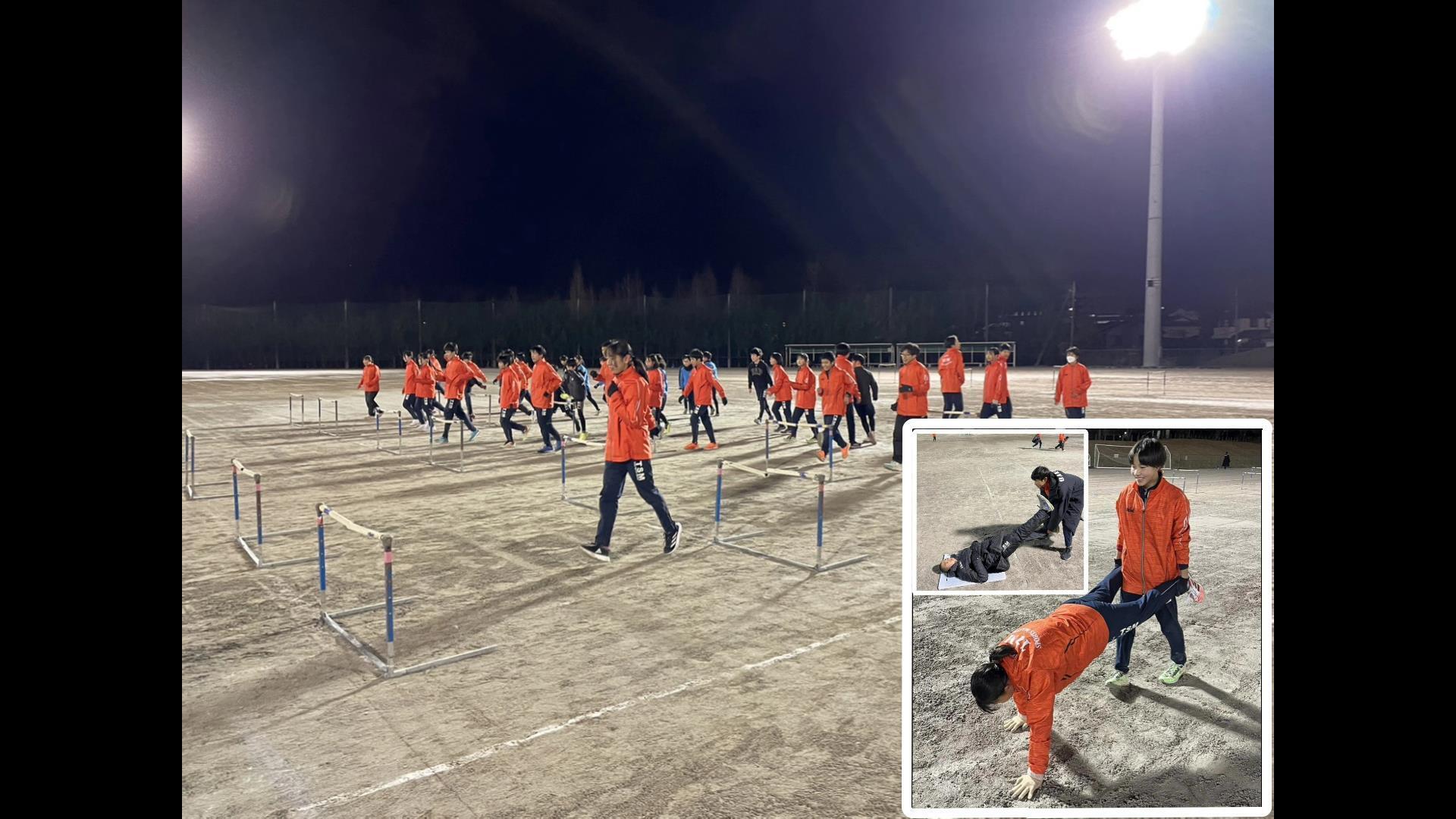 1月22日(月)活動報告【 大会まであと12日 】本日は前日までの雨の影響からグラウンド状態が最悪(泥でぐちゃぐちゃ状態)で、使用できそうな場所を選んでプログラムを変更して練習を進めました。大阪室内出場組は全体アップ終了後、コーチのチェックを受け、個々で修正をかけました。60m出場の浮田はスタブロからのスタート練習、60mH出場の小木曽、和知、松浦、小西、水野はスタブロからのアプローチ練習を中心に組み立てました。順調に来ています!全国的に寒波がきているということですが…皆様も体調管理にお気をつけください。「追加お知らせ」★小林航大(名古屋高3)・・・TSM卒団生 第102回全国高校サッカー選手権大会に愛知県代表として、名古屋高校が出場しました。ゴールキーパーで大活躍をしたのは、ご承知の通り。応援のお礼と報告に来ました。小林航大は、小学生時代、男子走高跳で、全国小学生陸上競技交流大会で、第4位入賞しました。TSMで基礎運動能力を学びながら、陸上大会に挑戦し、サッカーも頑張っていました。ブログでも紹介しています。↓https://ameblo.jp/tsmnagoya2007/entry-12837679224.html