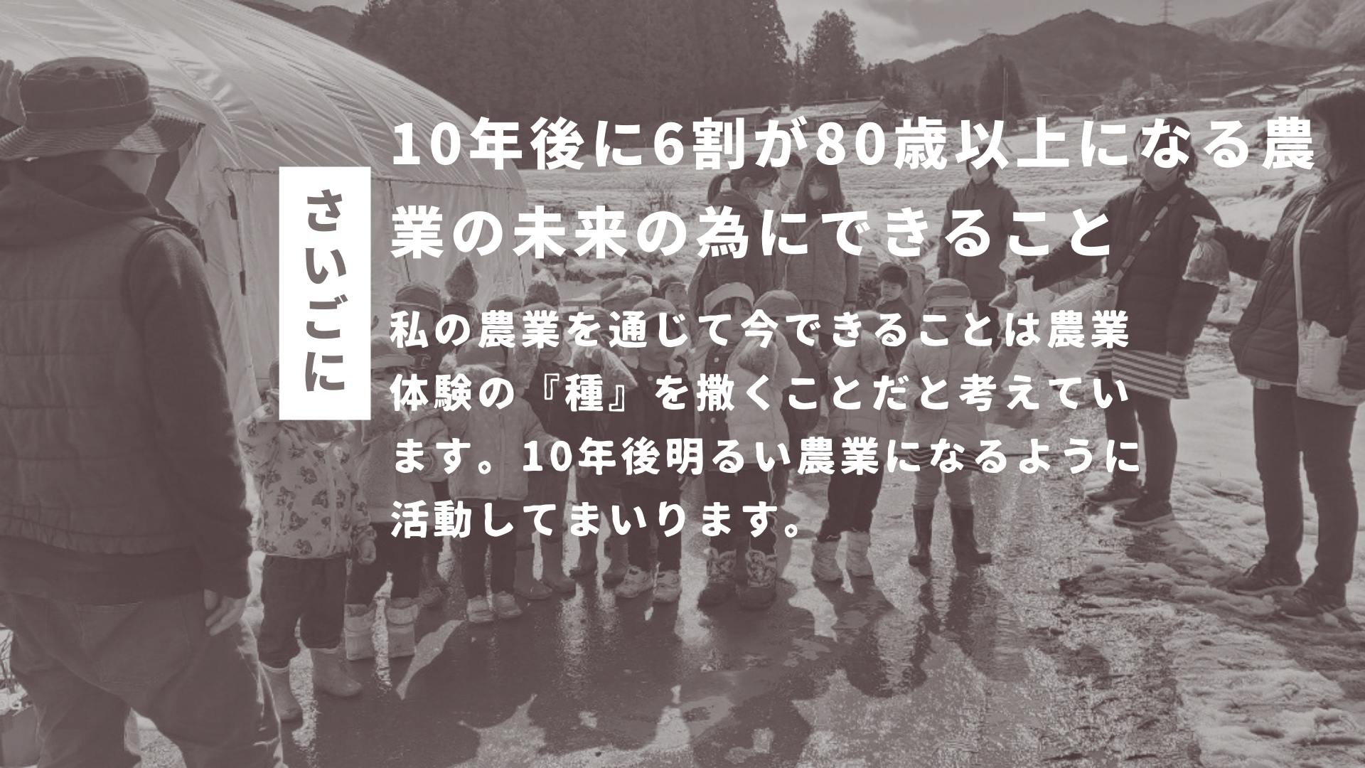 農業が明るい未来になるよう今から農業体験という【種】を巻いて活動していきます。10年後花が咲いていますように。岩見真(しん)