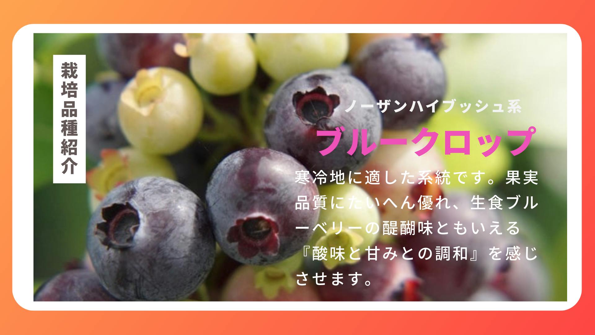 現在開園に向け品種選びをしブルークロップを植えることにしました。特徴は様々な環境に対応でき、病気にも強く寒暖差のある駒ヶ根市で味を最大限に引き出せる品種です。