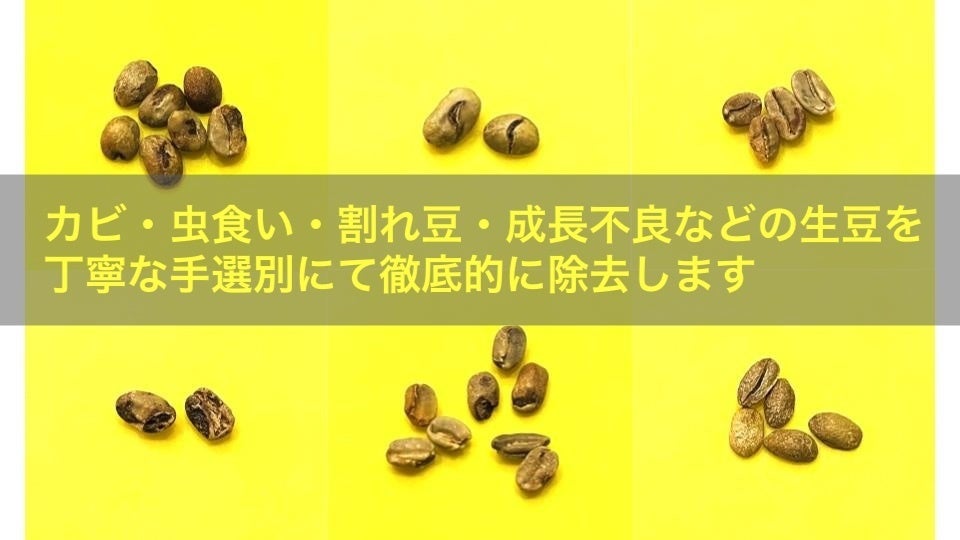 流通している生豆には、生産者や流通過程で大まかな選別はされているものの、カビ・虫食い・割れ豆などの欠点豆が一定数含まれています。大手メーカーは、機械選別による除去を行なっておりますが、私たちLITA COFFEEでは一粒一粒丁寧に手選別を行い、これらの欠点豆を徹底的に除去します。安心できる原材料を用いることで、お客様にさらなる安心感をお届けします。
