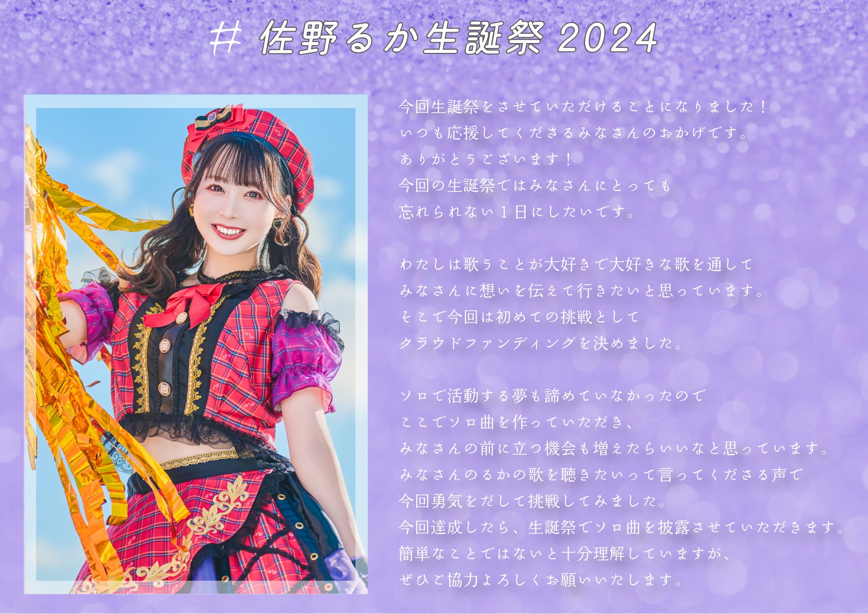 2024年2月24日開催予定のai*ai#佐野るか生誕祭2024にて、ai*ai加入後初となる佐野るかソロ曲をお披露目したいです!!