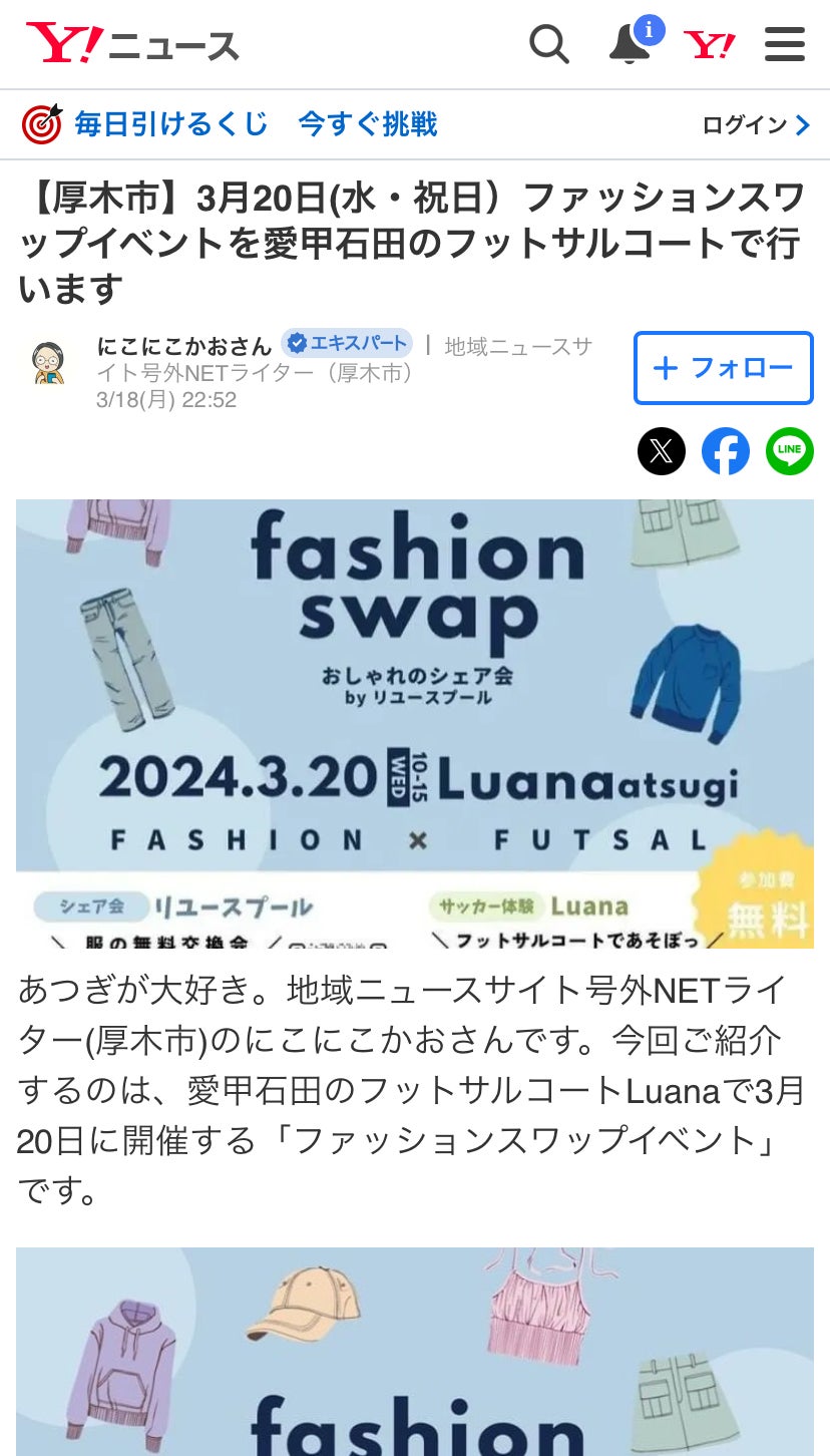2024/03/20 01:25春分の日のイベントについて、Yahoo!ニュースに記事を掲載していただきました!少しずつ施設の認知度も増えてきて嬉しく思います!このイベントは地元の事業者の方たちのお力をお借りして、厚木市を盛り上げようということで始めたイベントです!本当に皆さん精力的に活動しており、自分もいつも刺激をもらってます!こんなに素晴らしい活動をしている人たちと協力してイベントができていることに感謝しています!なんとか天気も持ち堪えるみたいなので、イベントを楽しみたいと思います! もっと見る
