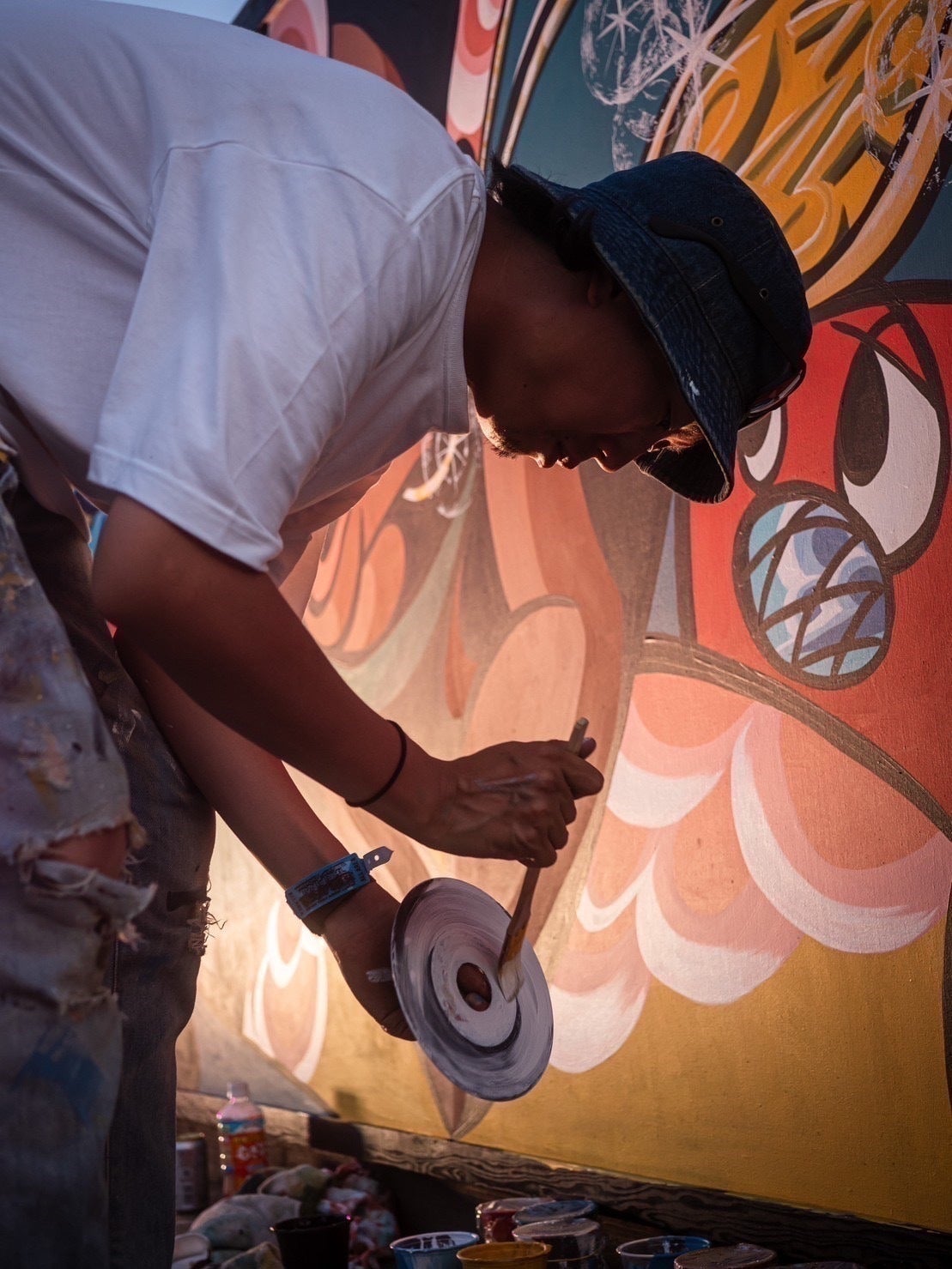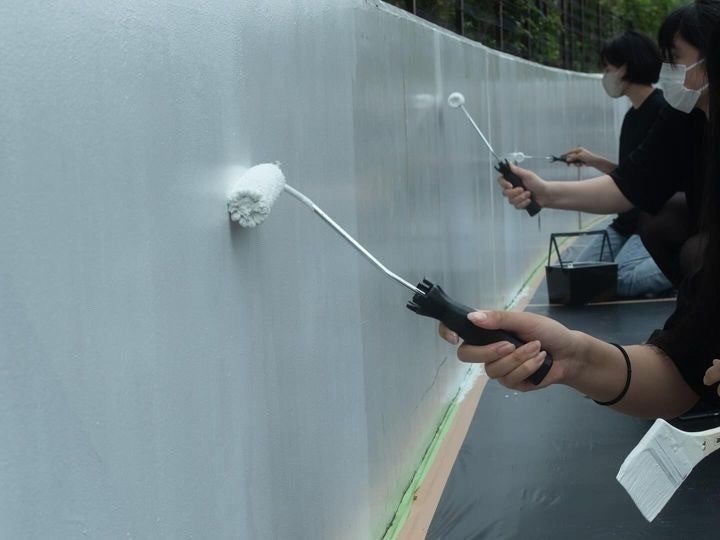 土台となる壁に自由に色を塗ってもらい、最後にアーティストさんの手によってみんなで作品を作るというものです!