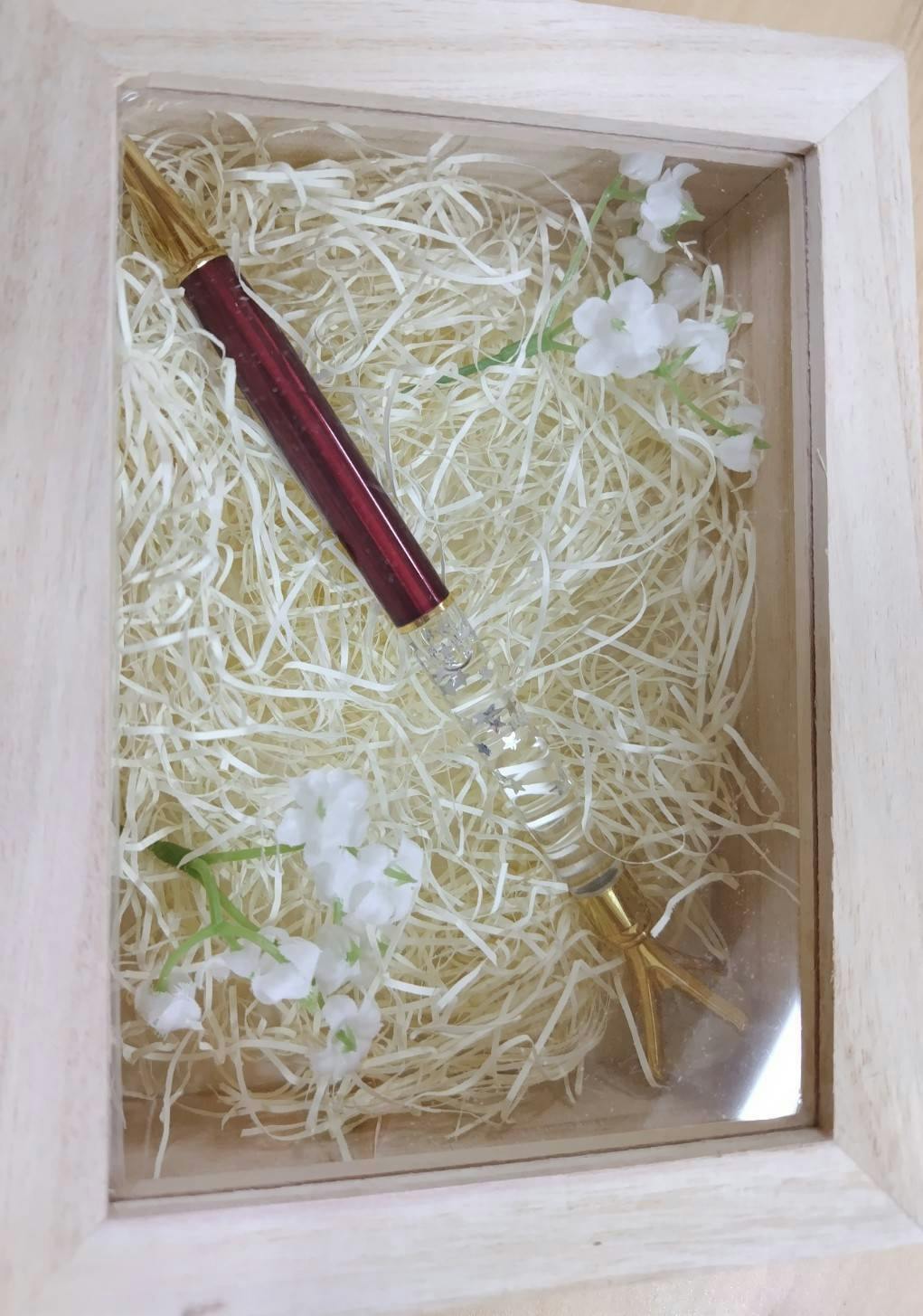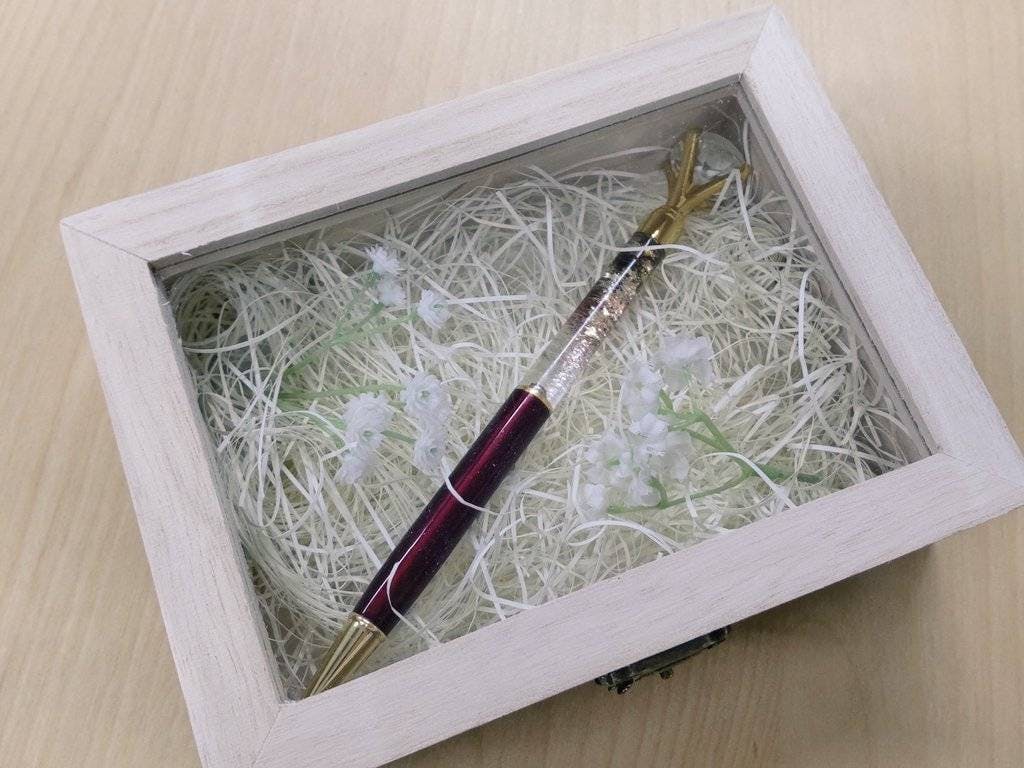 今回は、ハーバリウムボールペンを作成予定です。ハーバリウムボールペンとは、ボールペンの中に植物標本等が入っているボールペンです。実用的な小物をプレゼントしたいということで、スタッフ一同で考えました。