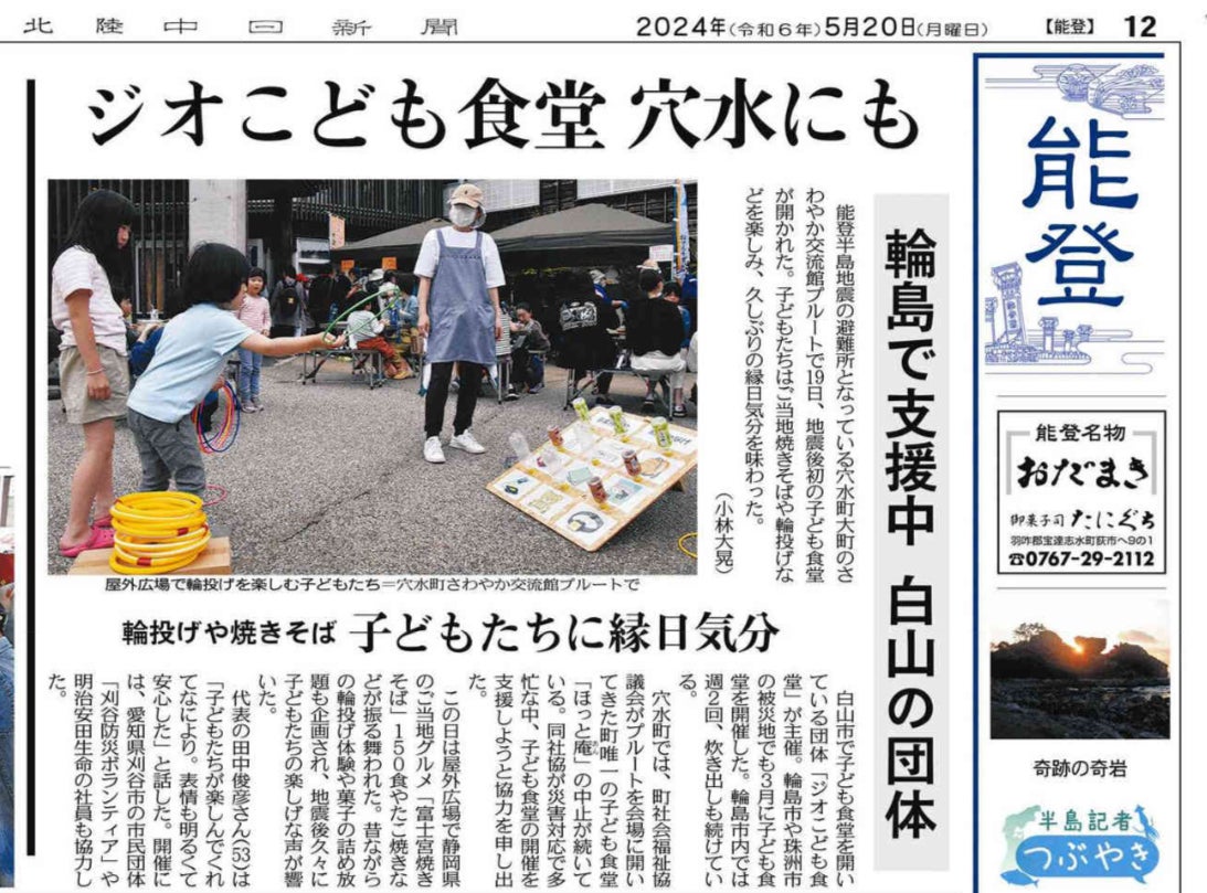 上記は、私の活動が掲載された北陸中日新聞の記事です。