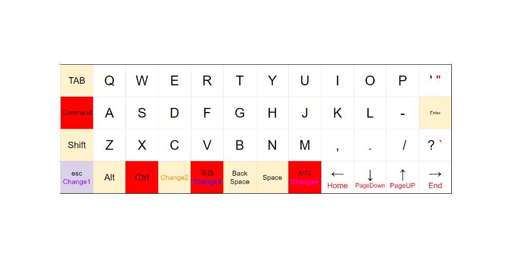 これらのキー配置は慣れるまで違和感を感じますが、慣れれば使い勝手が格段に上昇します