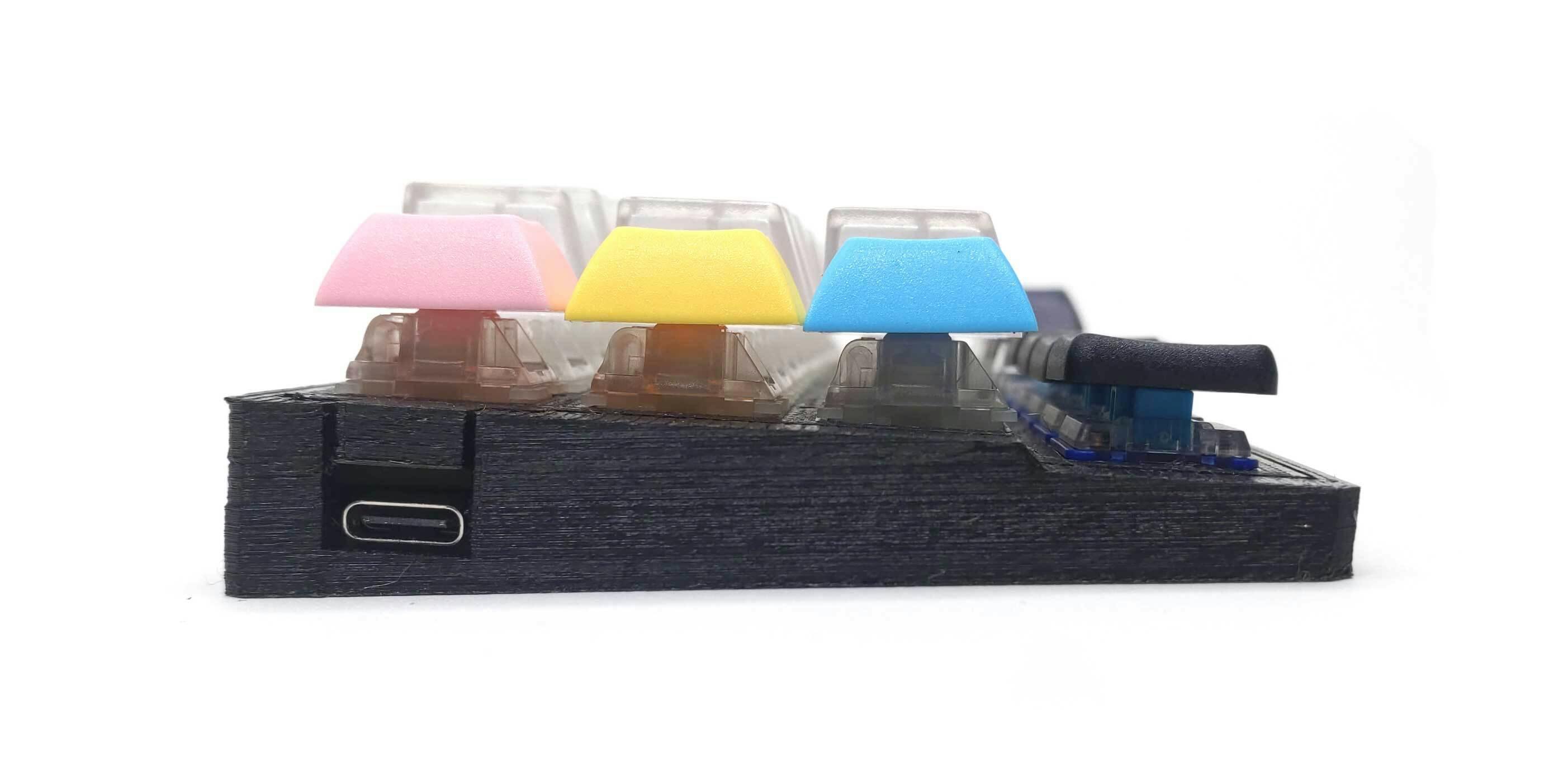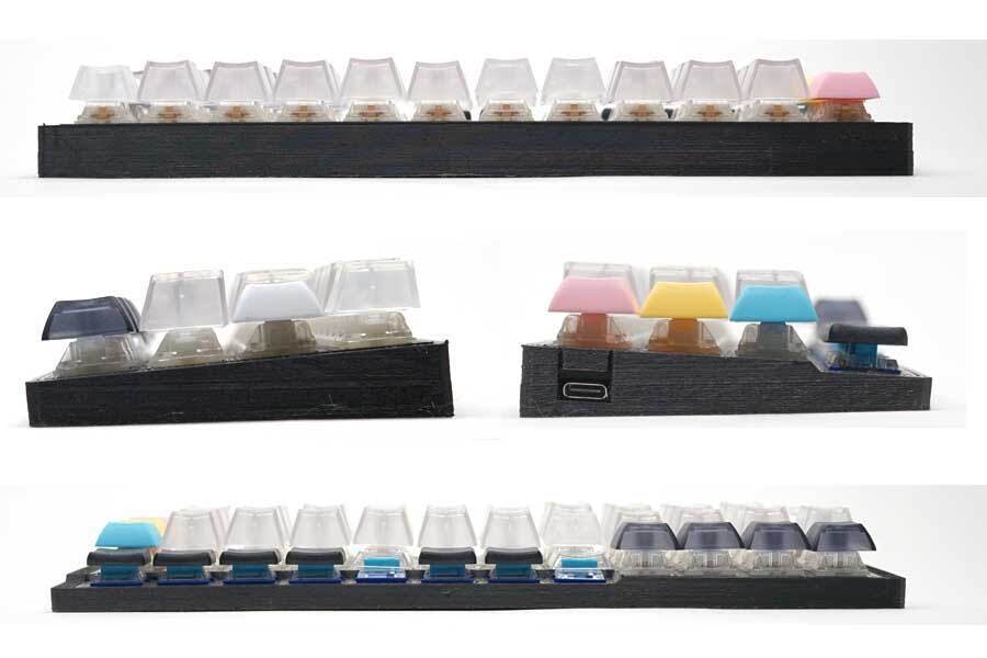 キーボードの外側のパーツは3Dプリンターを使って一枚一枚出力しております。なので一つ一つ微妙な差異が存在しますし積層痕が見えます。