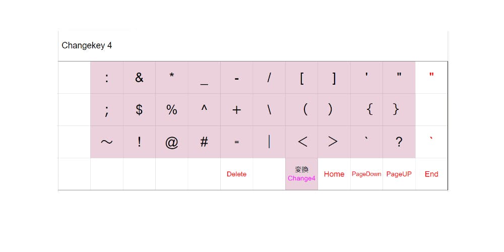 一般的なキーボードに配置されている記号類すべては【Change4】キーを長押しすることで入力が可能です。