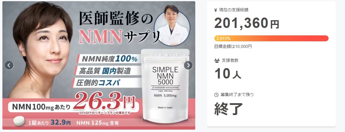 昨年はCAMPFIREのSIMPLE NMN5000のプロジェクトを応援いただき、誠にありがとうございました。