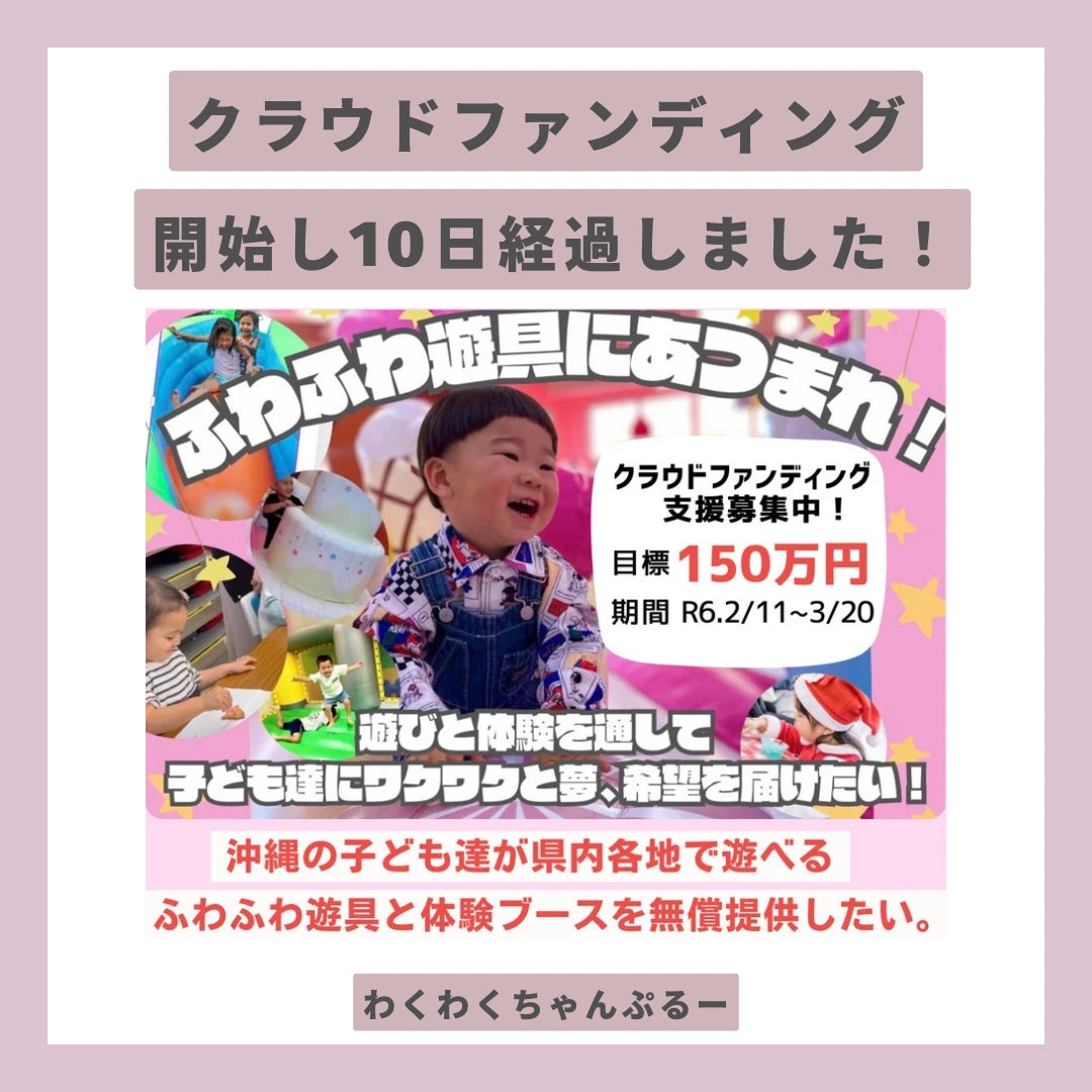 2024/02/21 19:28クラウドファンディング開始10日経過!目標の50%達成させて頂きました!ご賛同、ご支援、拡散してくださる皆様のお陰です!本当にありがとうございます!!クラウドファンディングを通して頂く皆様からの温かいメッセージや、子どもたちを思う気持ちに日々胸が熱くなります。たくさん励まされ、頑張ろう!!と力を頂いています!皆様からの恩をイベントを通して多くの子どもたちへ返していけるよう頑張ります!!クラファン終了まで残り28日!これからもたくさんのご賛同、ご支援、拡散をどうかよろしくお願い致します!!わくわくちゃんぷるーInstagramはプロフィールから飛べます。 もっと見る