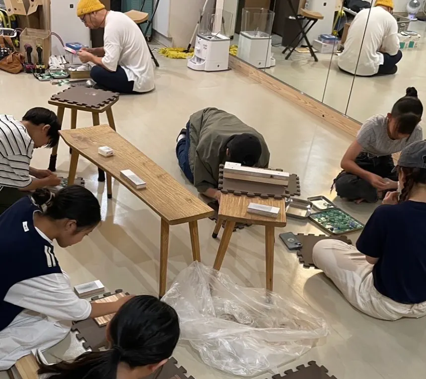 写真は子供達がリターン品をひとつひとつ作成しているところです!