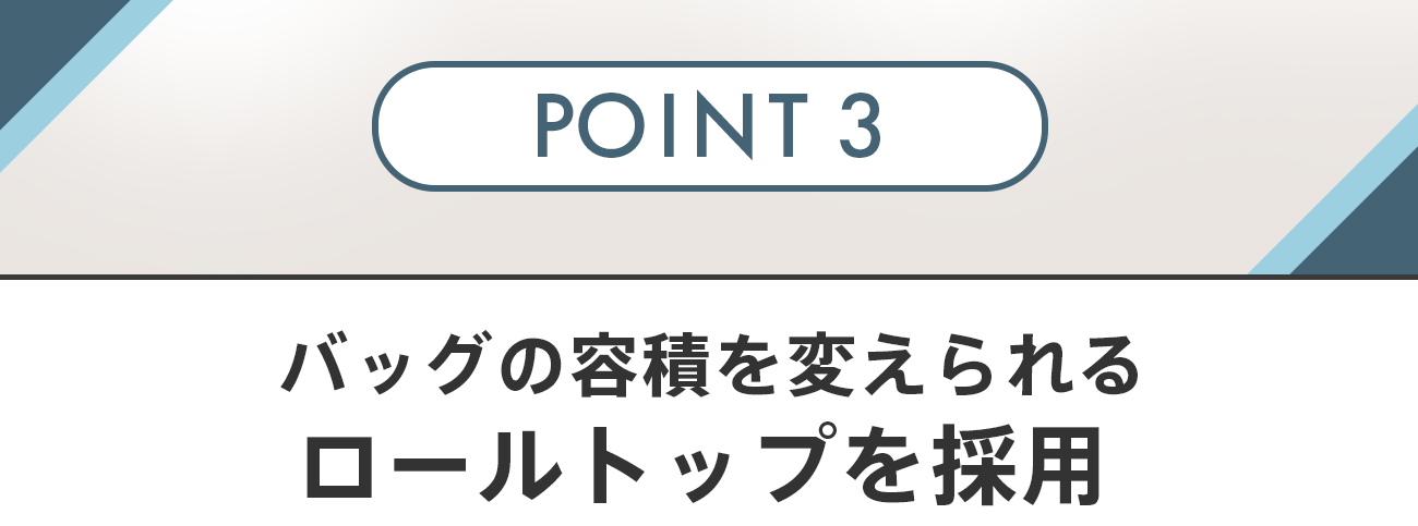 さらにロールトップのバックパックは見た目もスタイリッシュ。