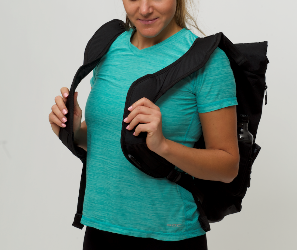 荷物の重さはショルダーストラップに集中し、背負うとショルダーストラップが肩に食い込み、周囲の骨や筋肉に負担が掛かります。