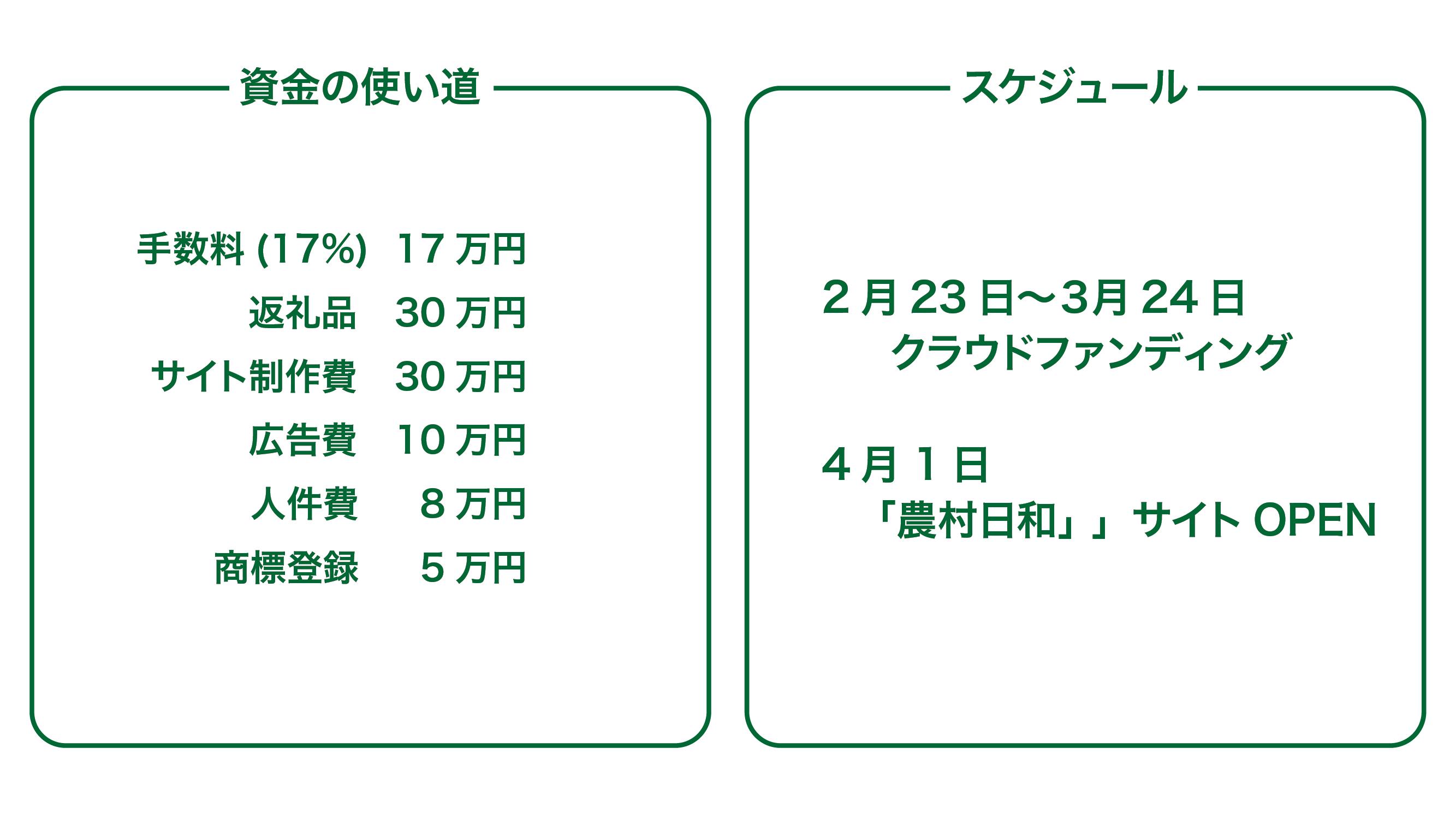 2024/04/01 21:00こんばんは!農村日和運営の佐々木です。この度はご支援ありがとうございました!なんと、ついに!農村日和がオープンしました!!ここまで来れたのも皆様の応援や励ましの声があったからこそです。本当にありがとうございます。成長途中のプロジェクトですので何かとご不便をおかけする場面があるかもしれませんが、暖かく見守っていただけると幸いです。それでは良い出会いがありますように!>> 農村日和へ GO !! もっと見る