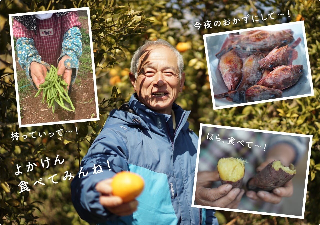 さらに、地域のみなさんの家々を訪ねれば「これ食べて行かんね〜」「これ持って帰らんね〜」と、おもてなしやおすそわけのオンパレード……(涙)モノやサービスを“お金で買う”ことが当たり前になっていた私にとって、西海市に息づく贈与的な営み、助け合いの心や、“いかし・いかされるつながり”が自然と感じられるコミュニティは、新鮮なおどろきと感動の連続でした。