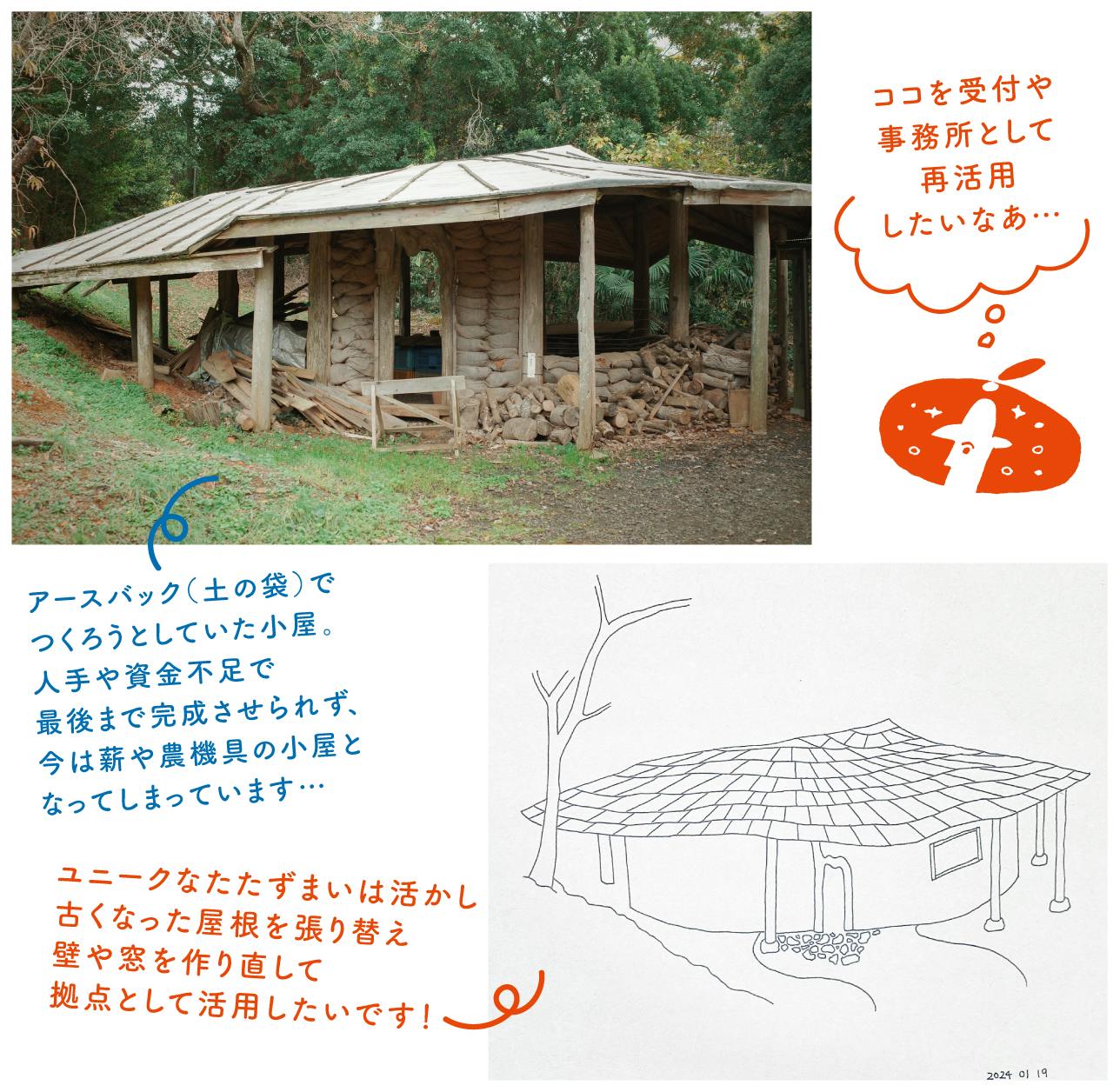 しかし、これからさいかい元氣村を活気ある場所にしていくため、そして遊びに来てくださる皆さんに安心して施設を利用していただくためにも、今ある小屋を改修して、拠点となる事務所・受付スペースを作り、スタッフが常駐できる体制を整えたいと考えています。