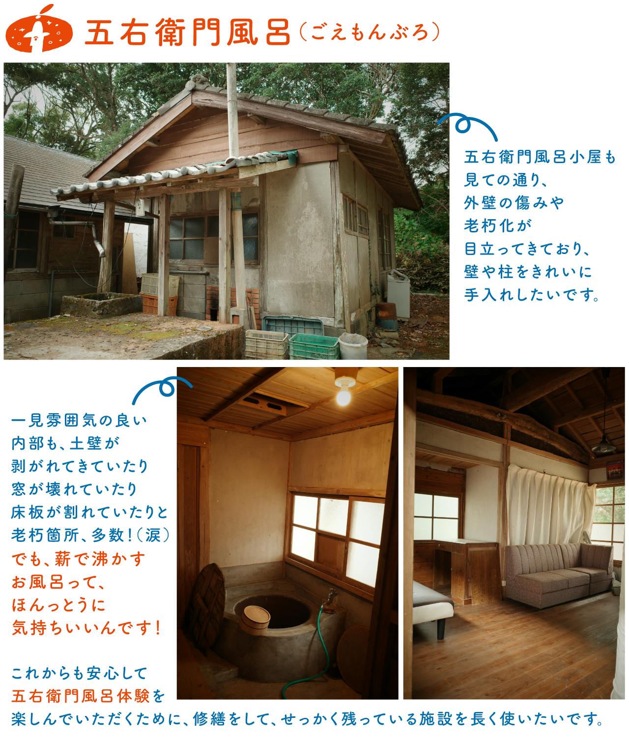 ①五右衛門風呂内外壁修復、シャワー設置 約30万円