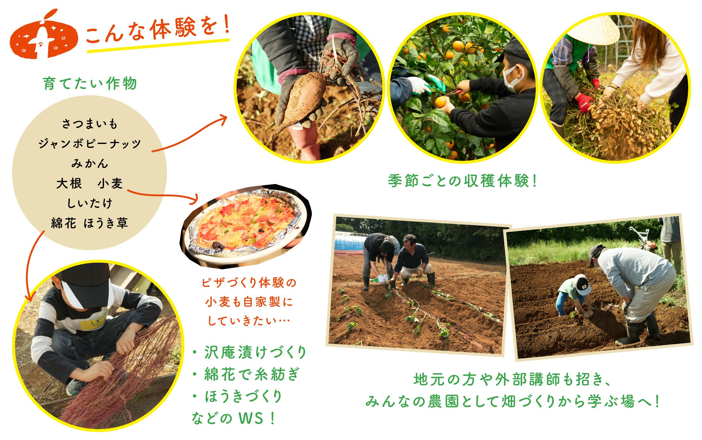 さいかい元氣村では当初、会員を募って「週末農園(貸し農園)」などの取り組みも行っていましたが、忙しい生活の中でなかなか定期的に通ってくることが難しく、今はみかん、さつまいも、ピーナッツ、しいたけなど、村で育てている作物の収穫体験の実施が主となっています。