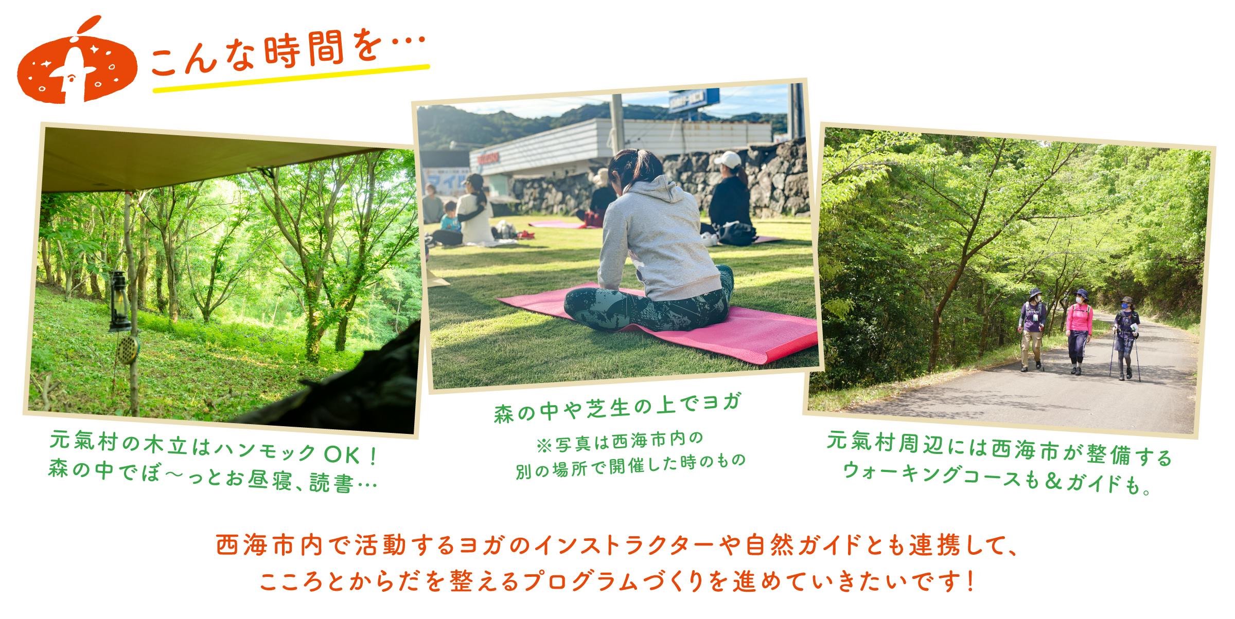 森の中でのヨガやウォーキング、からだにやさしいおやつや食事づくり、対話など、こころとからだを整えるワークショップなども企画していきたいと思います。また、五右衛門風呂に加え、テントサウナも導入し、よりリフレッシュできる時間を提供していきます。
