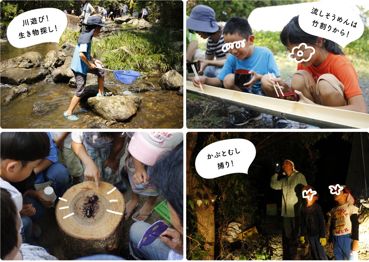 また、夏休みにはファミリー向けに、「ビートルキャンプ」という川遊びや流しそうめん、かぶとむし捕りをするイベントなども実施していました。これらのイベントはコロナ禍以後、スタッフのみなさんの高齢化や人手不足も重なって、休止状態が続いています。2024年以後はあらためて、イベントも開催していけるよう計画中です!