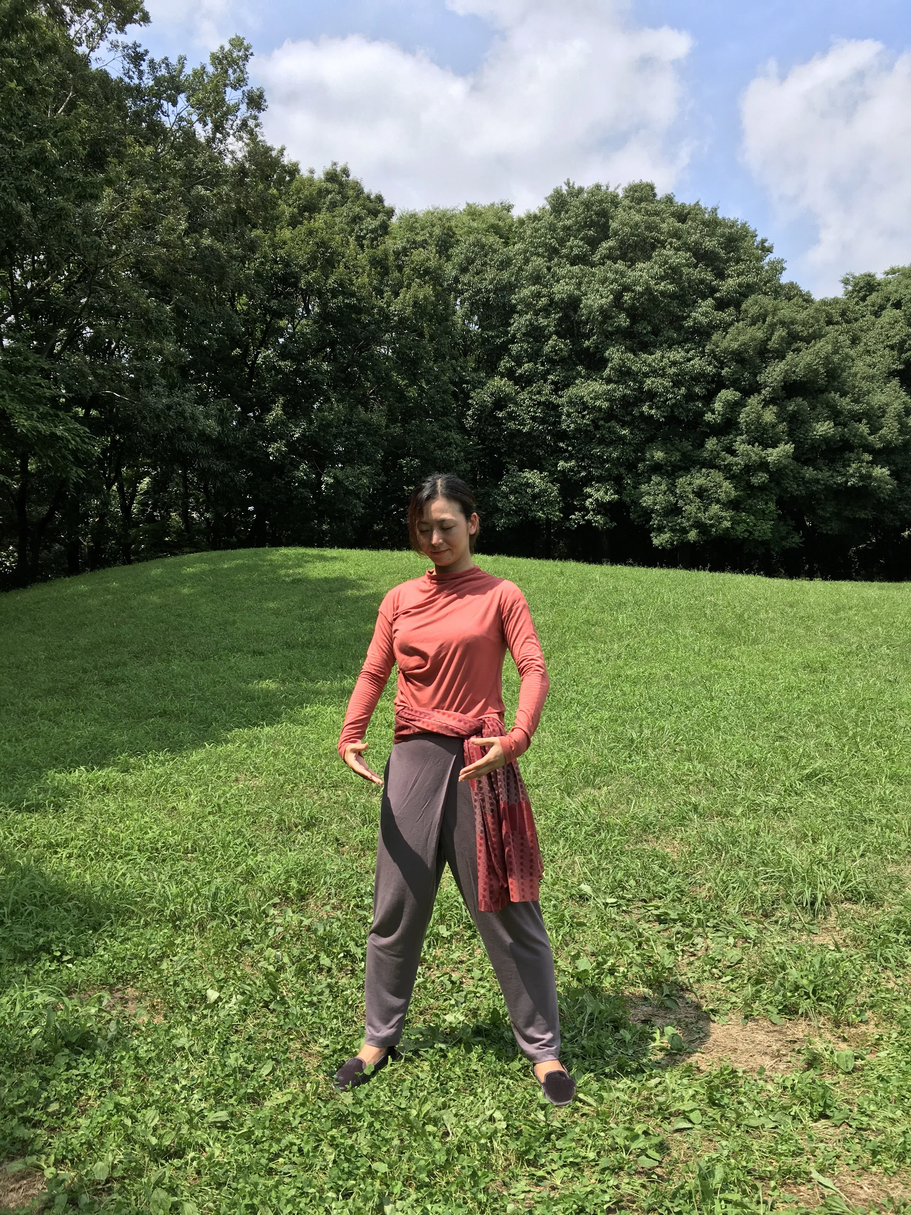 部位別にそれぞれ10の型があり、その前後に始型、終型、そして最後に立瞑想を含めて13の型となります。体幹部を中心に頭頂から足底まで上記「体極動」と「丹田呼吸法」を用いながら行っていきます。