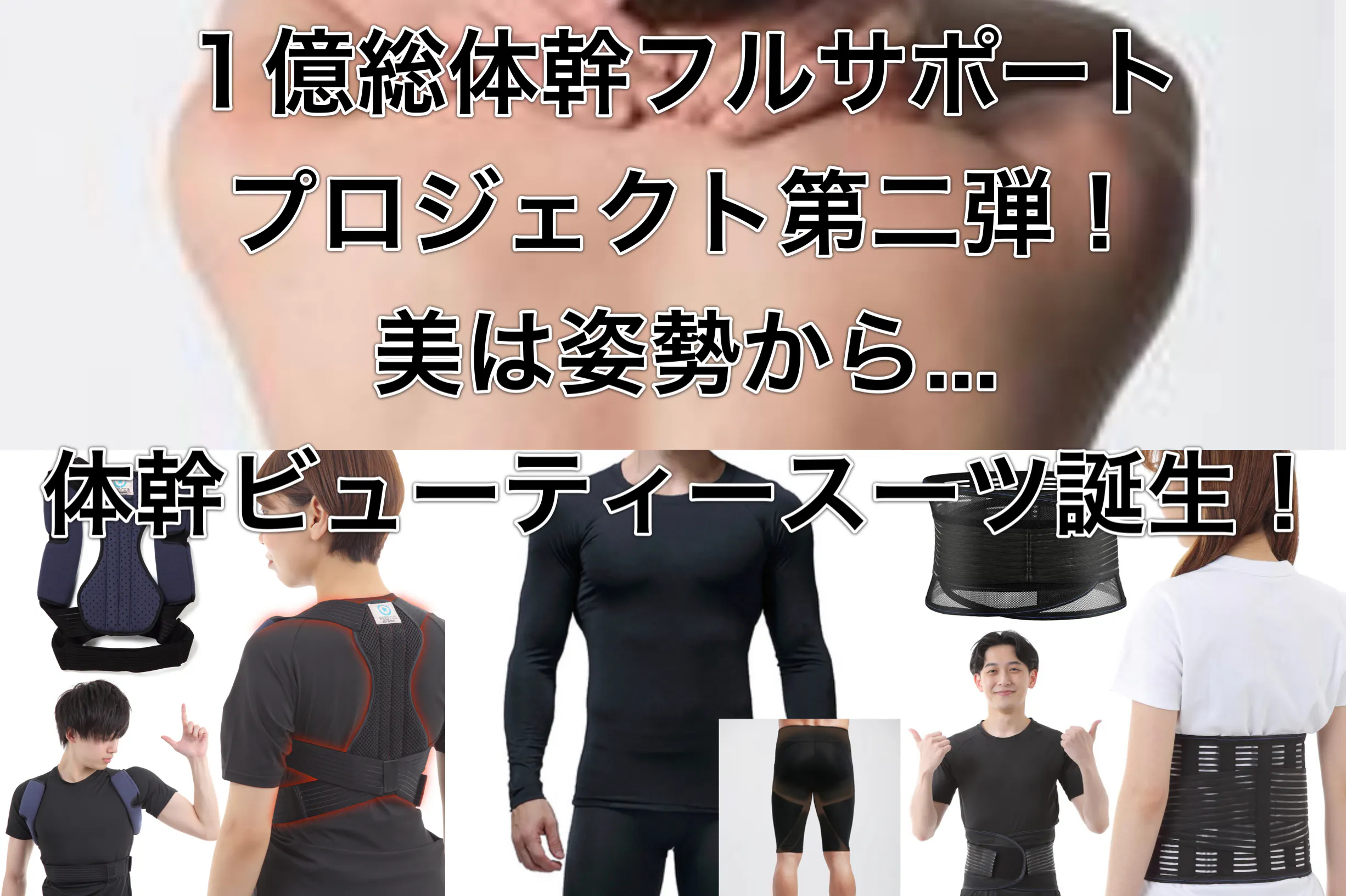 ですので今回は体幹シリーズの完成形、前回の体幹フルサポートセットに加圧スパッツをプラス、座りすぎ防止対策として体幹をトータルでサポートできる体幹ビューティースーツを誕生させました!