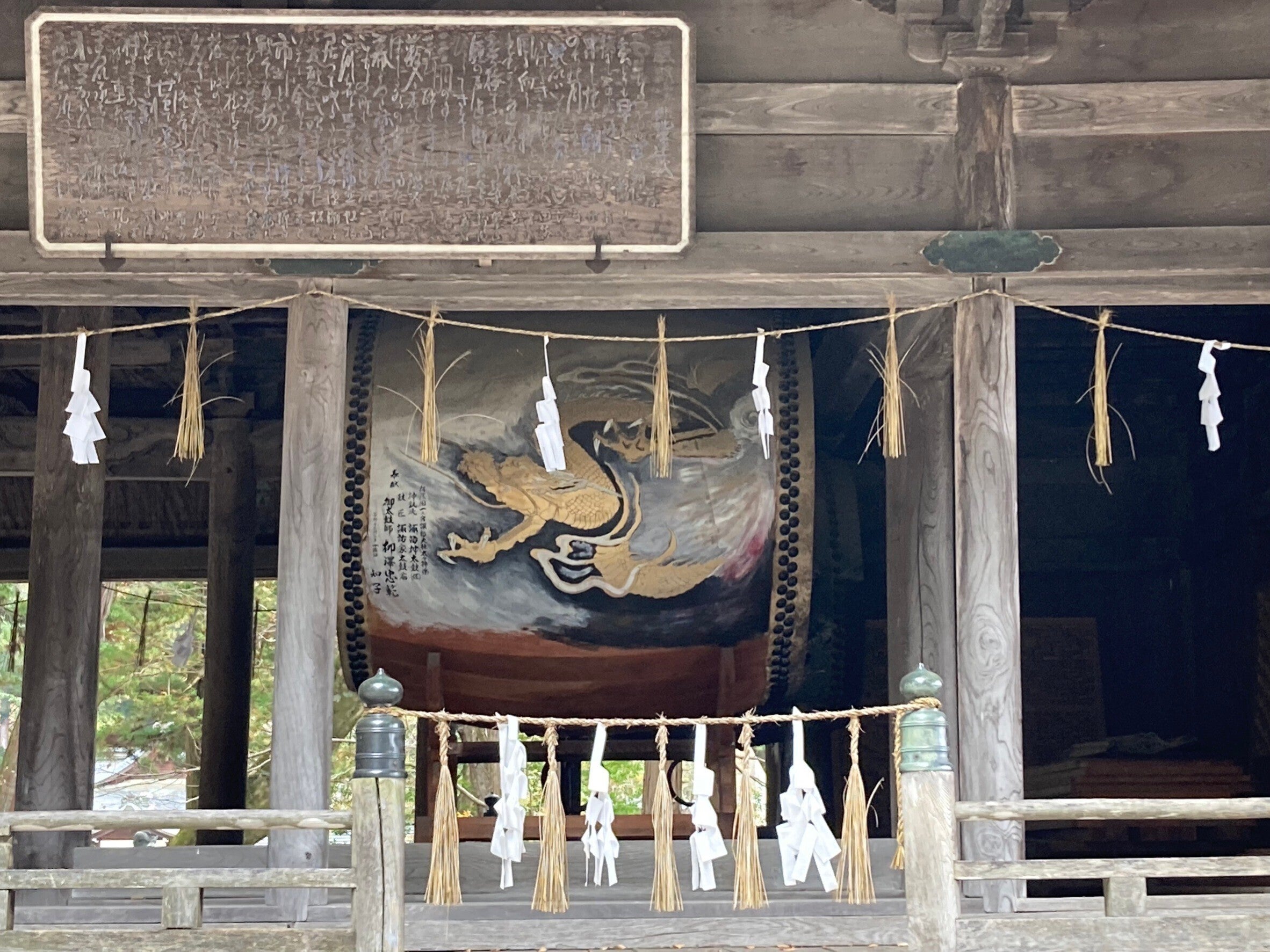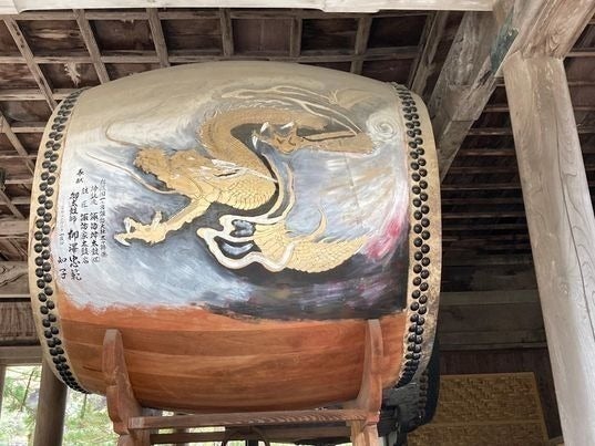 神楽殿に納められている龍神大太鼓