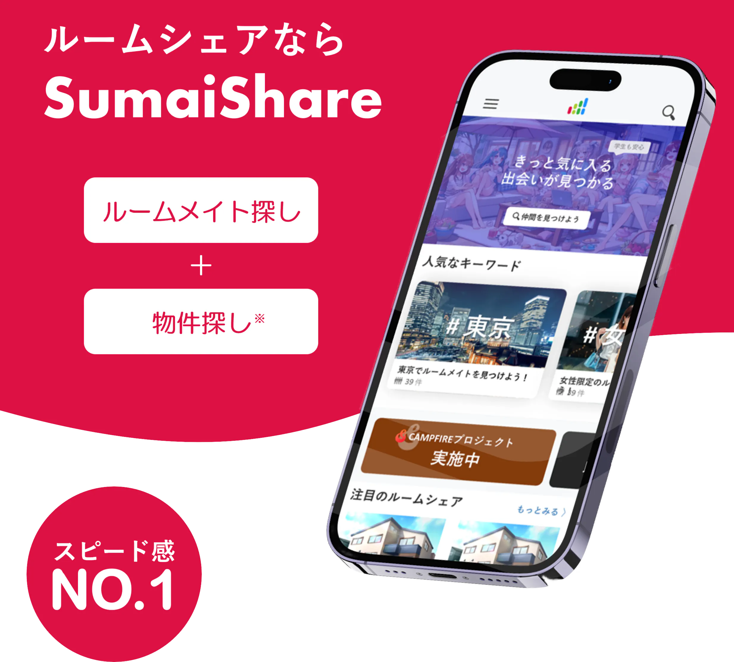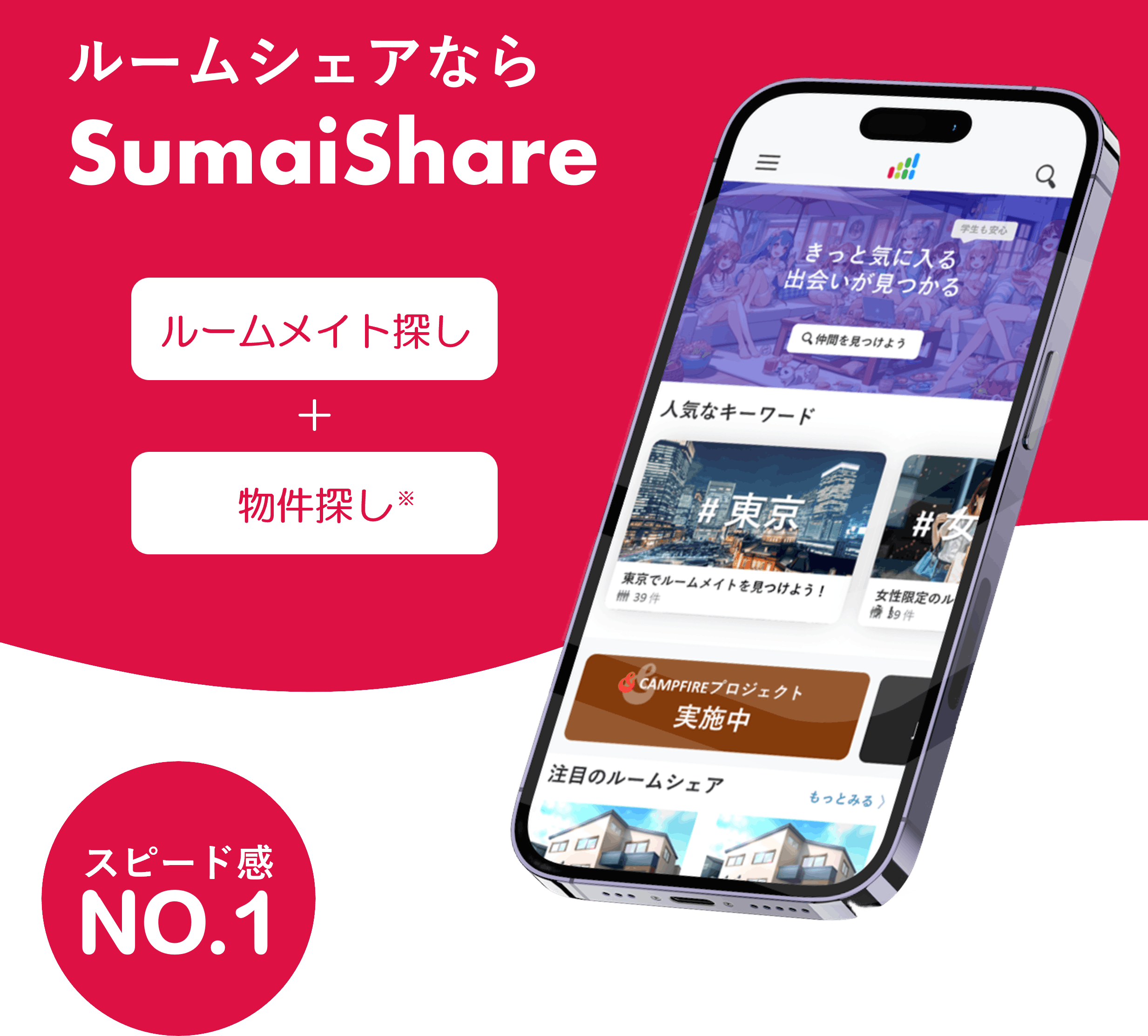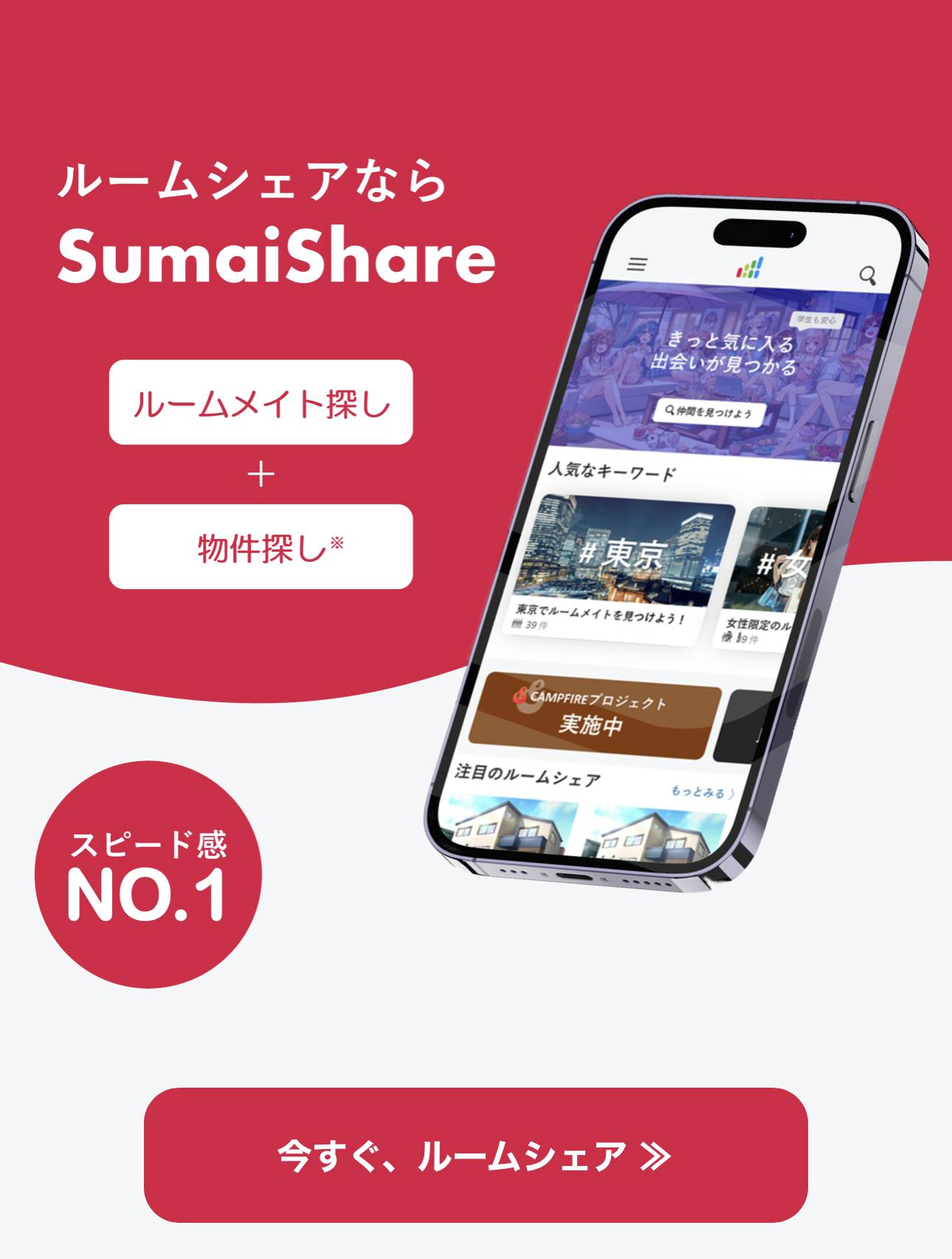 SUMAI SHARE(スマイシェア)は、「一緒に住みたいをスムーズに」をコンセプトに掲げています。手軽にルームメイト・物件を探すことのできるアプリをリリースします。そのために皆様のご支援・ご協力をよろしくお願い申し上げます!