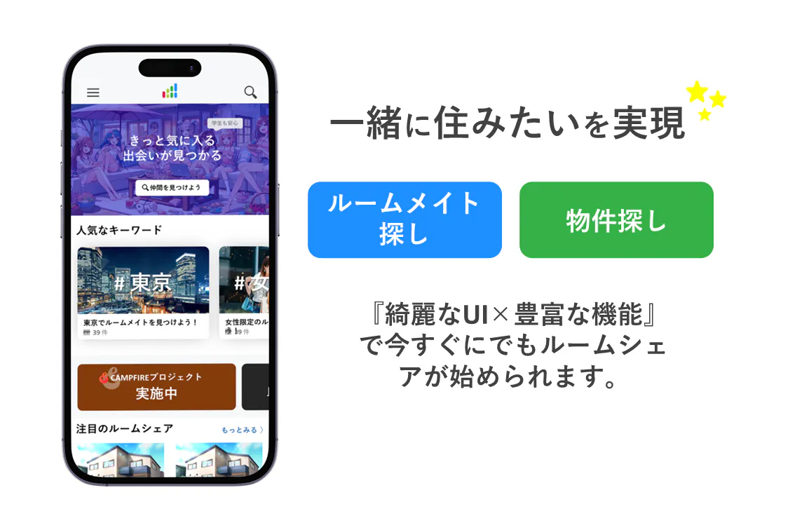 私たちは、ルームシェアをもっと身近にするために、日々懸命に取り組んでいます。皆様のご支援により、私たちの夢を実現することができます。一緒に新しいルームシェアのスタイルを作り上げましょう。ご支援いただける方々に心から感謝申し上げます。