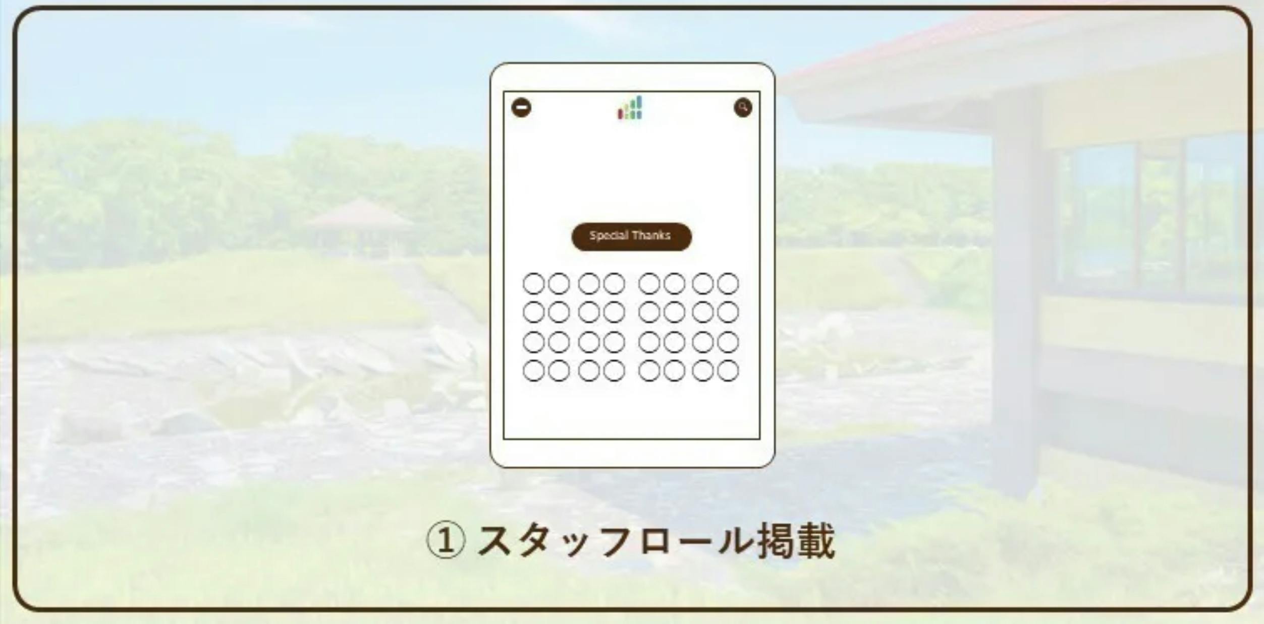 ご支援いただいた方々には、プロジェクトの成功に向けた感謝の気持ちを込めたリターンをご用意しています。スタッフロールへの掲載、さらにクラファン限定グッズなど、様々な特典をご用意いたしました※1※2。また、プロジェクトの進捗状況を定期的に報告することで、支援者の皆様とのコミュニケーションを大切にしています。