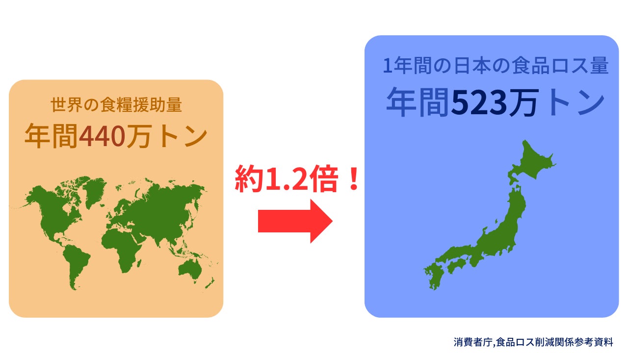 また、世界の食糧援助量が年間約440万tであることからも、日本で発生する食品ロス量は食糧援助量の約1.2倍とかなり多く、本来であればおいしく食べられるはずのものが毎日大量廃棄されているという現状があります。
