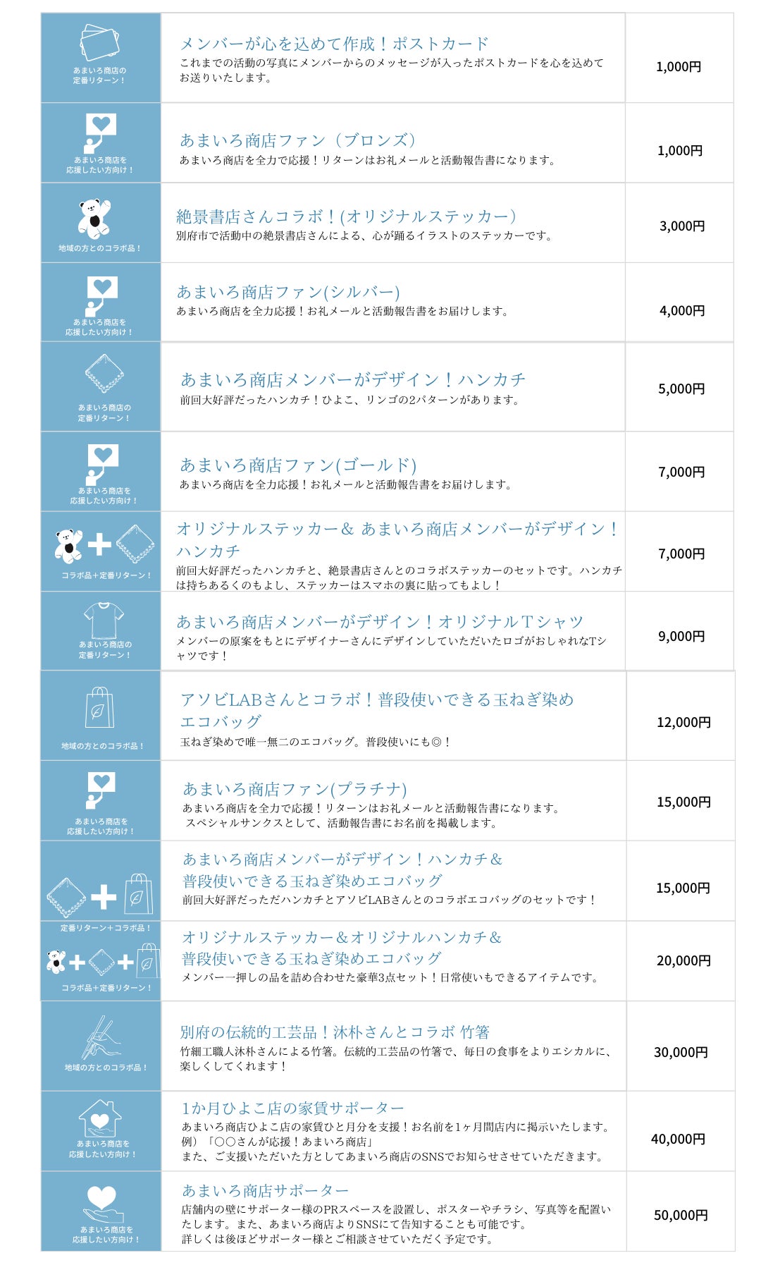リターンはこちらをご用意させていただきます。