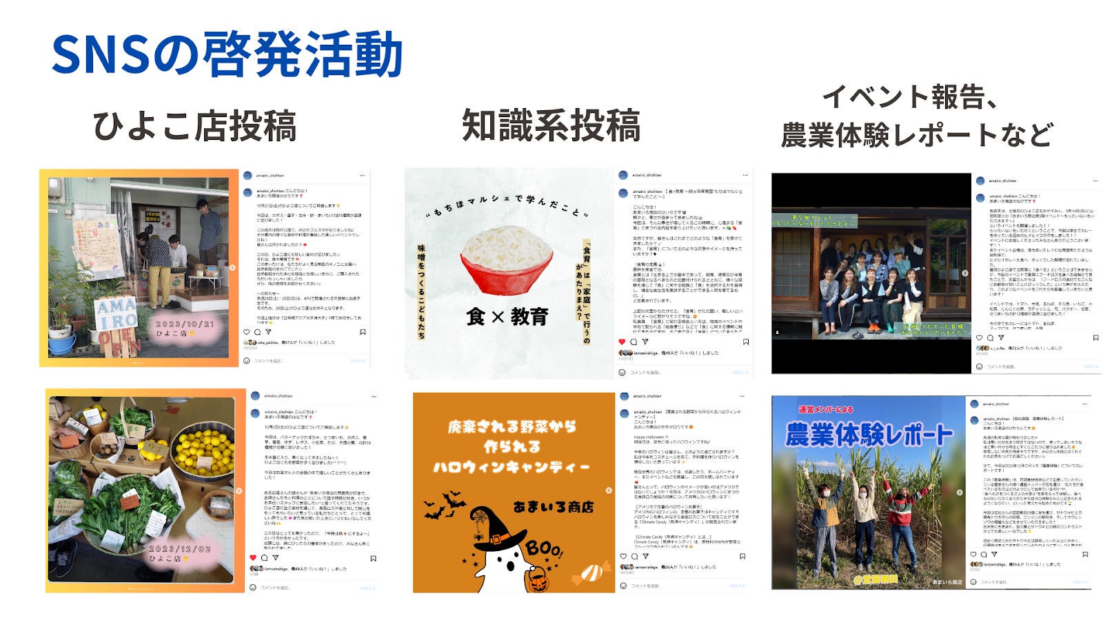 今回、クラウドファンディングでご支援いただいた方を含めサポートいただいている方には、継続的にあまいろ商店の活動を報告させていただき、繋がったご縁を末長く大事に繋いでいくことができたらと考えております。