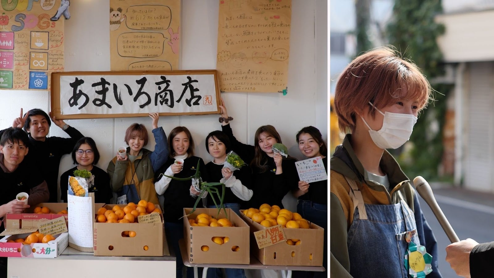 あまいろ商店は、品質には問題ないのに廃棄されてしまう「食品ロス」と、食べることに困っている人がいる「食の貧困問題」の同時解決を目指して、学生を中心に日々活動しています。