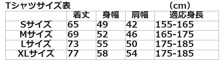 ・Tシャツ・・・サイズは4種類ご用意しております。下の表をご参考に購入時に備考欄に記入をお願いいたします。もし記入がない場合はMサイズをお送りさせていただきます。
