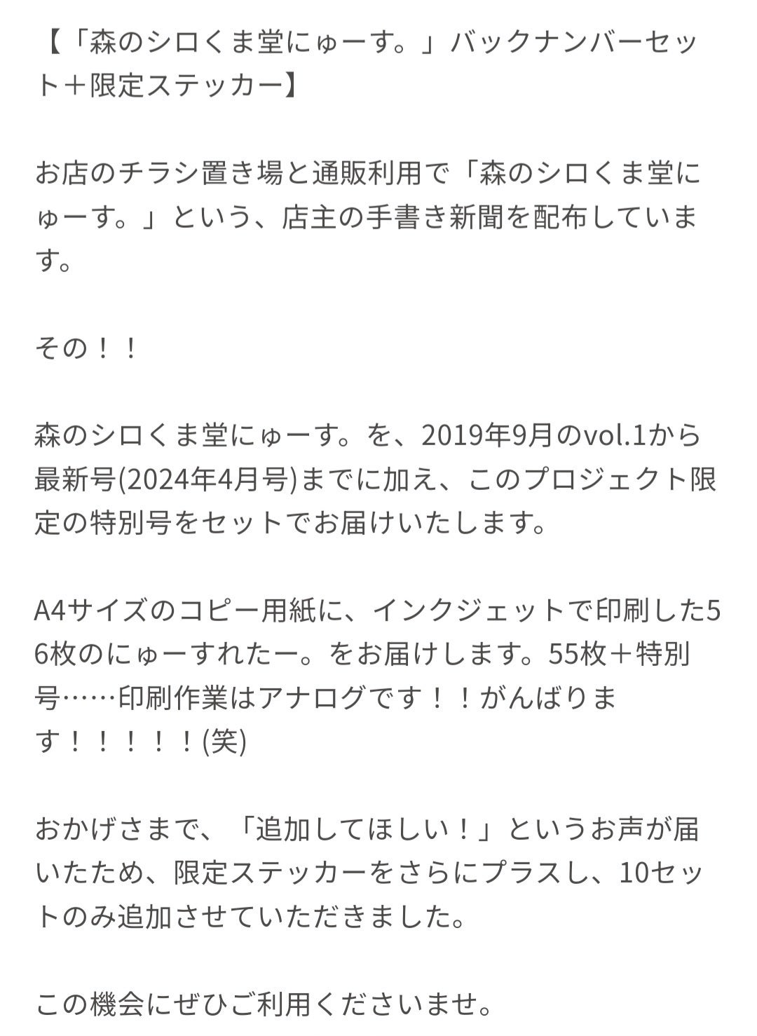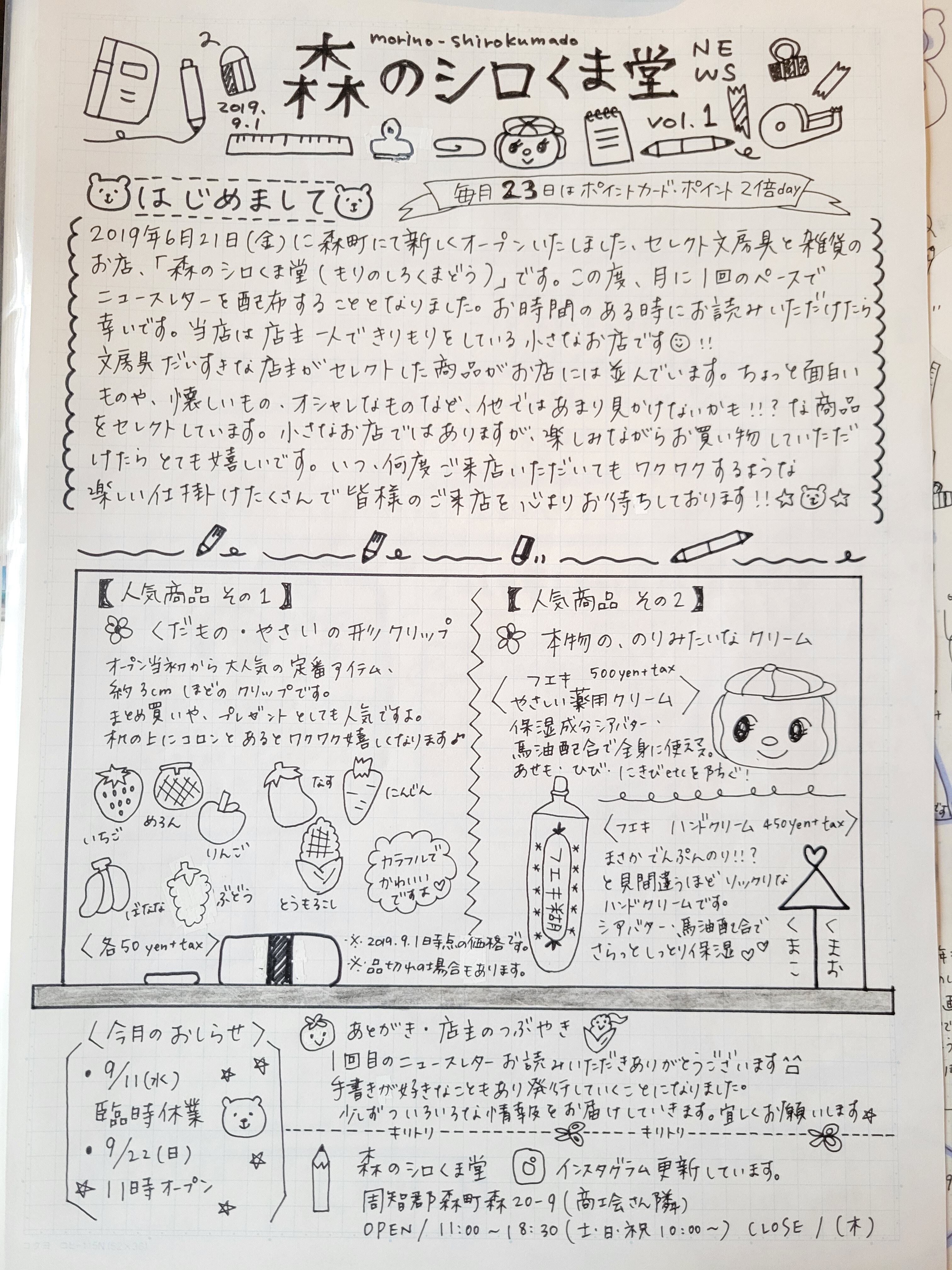 にゅーすれたー。のバックナンバーを読んでいただきながら、森のシロくま堂の成長も感じていただけたら嬉しいです。