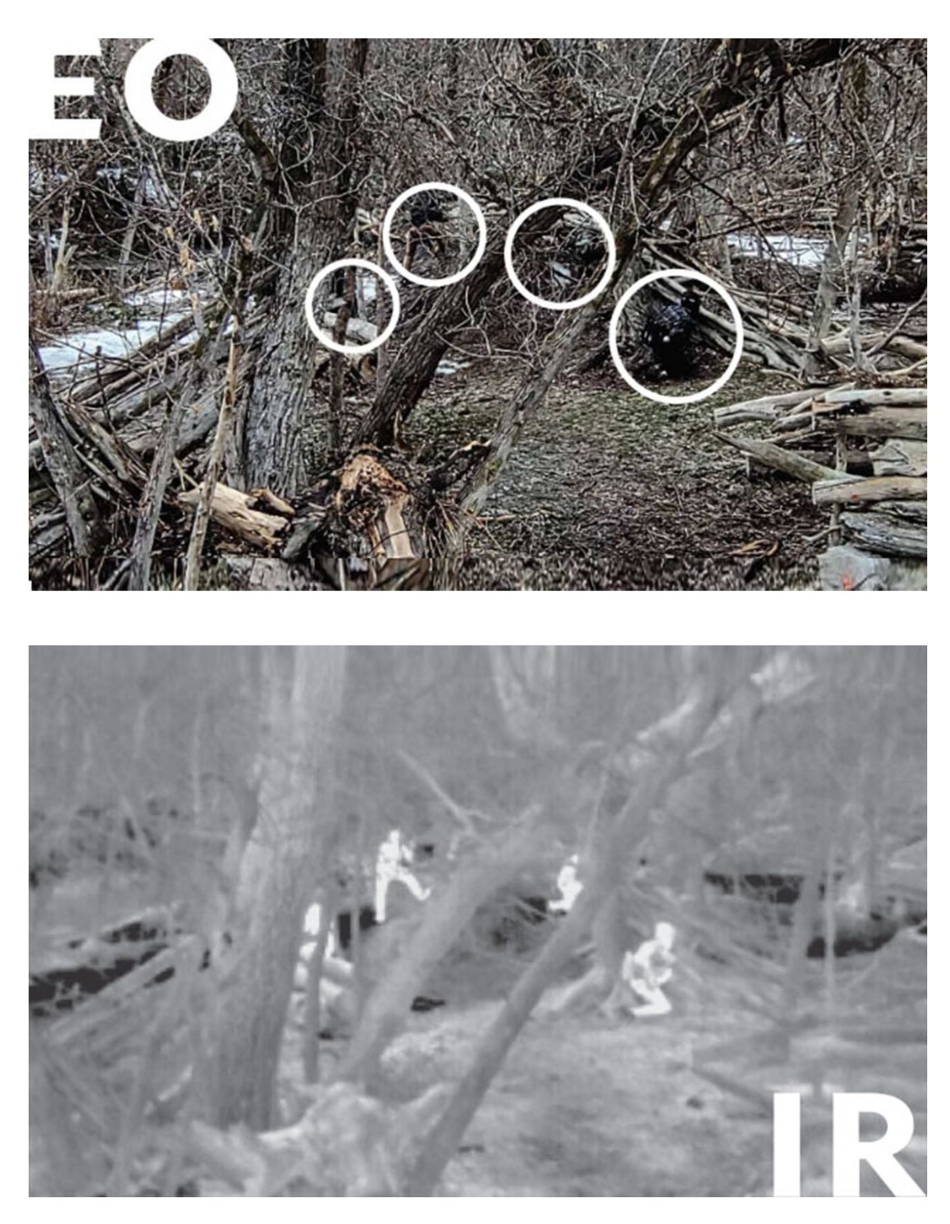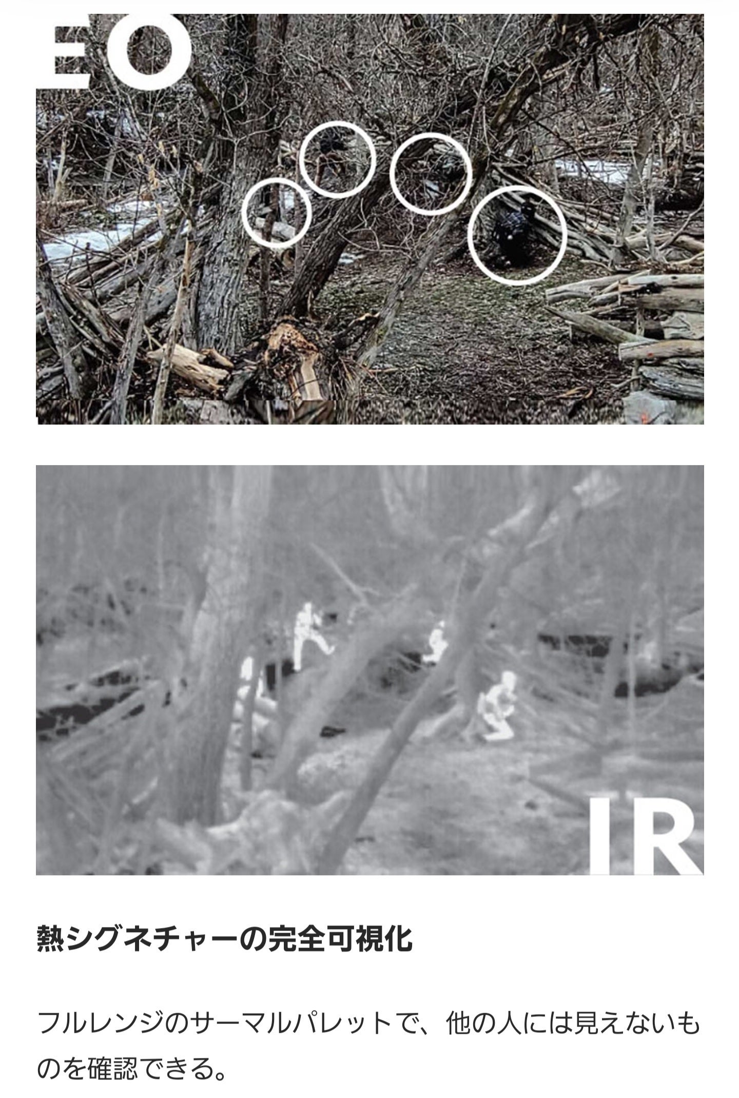 下の画像をご覧いただくと、肉眼では判別が難しい、人と、木々との違いが、一目瞭然で判別できます。