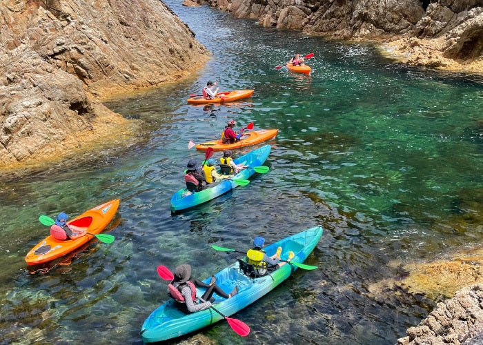 ユネスコ世界ジオパーク認定された海の、シーカヤックで洞窟に入ったり、岩と岩の間を抜けたりする体験!