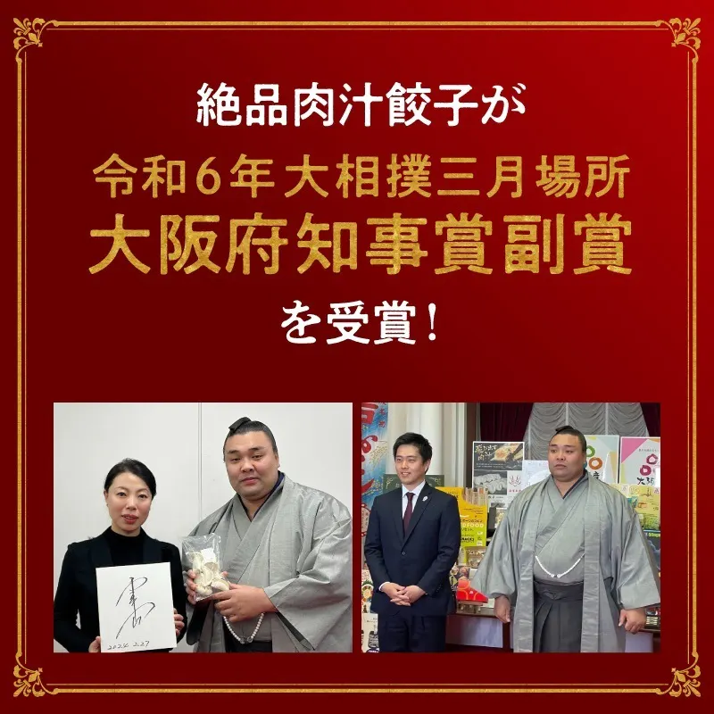 2024/02/29 12:43サポーターの皆様日々のご支援ありがとうございます。おかげさまで絶品肉汁餃子が、大相撲三月場所、大阪府知事賞副賞を受賞することができました。大相撲三月場所の幕内最高優勝力士の栄誉をたたえ、千秋楽の表彰式において、大阪府知事賞を贈呈されています。今年度から、大阪産(もん)・大阪産(もん)名品の贈呈に加えて、大阪製ブランドの商品も贈呈されております。昨日、府庁で行なった前年幕内最高優勝力士(霧島関)との懇談会及び優勝楯贈呈式に出席した画像がございますのでぜひ、皆様にご覧いただきたく展開させて頂きます。■リンクはこちらhttps://www.pref.osaka.lg.jp/miryokuzukuri/sumo/index.html引き続き、ご支援を頂けますと幸いです。何卒よろしくお願い申し上げます。 もっと見る