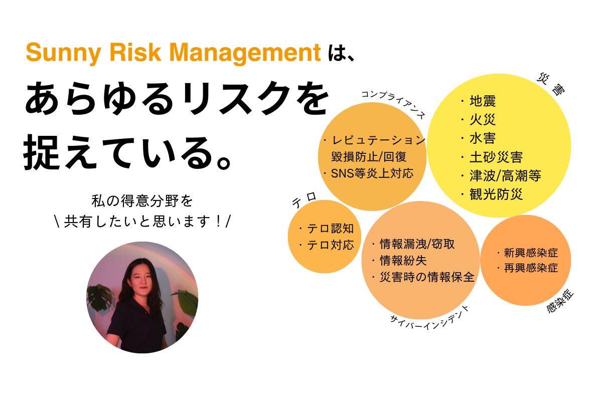長崎と東京の2拠点で、現役大学生兼危機管理コンサルタントとして活動しております、Sunny Risk Management(サニーリスクマネジメント)と申します。