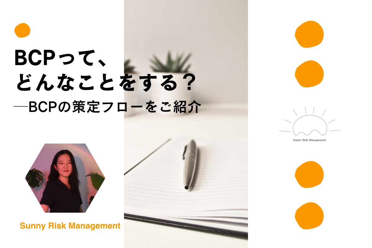 今回の活動報告では、サニーリスクマネジメントが中核事業のひとつとして展開している「BCP策定支援」に関連して、BCPの策定フローをご紹介いたします!ぜひご覧ください。